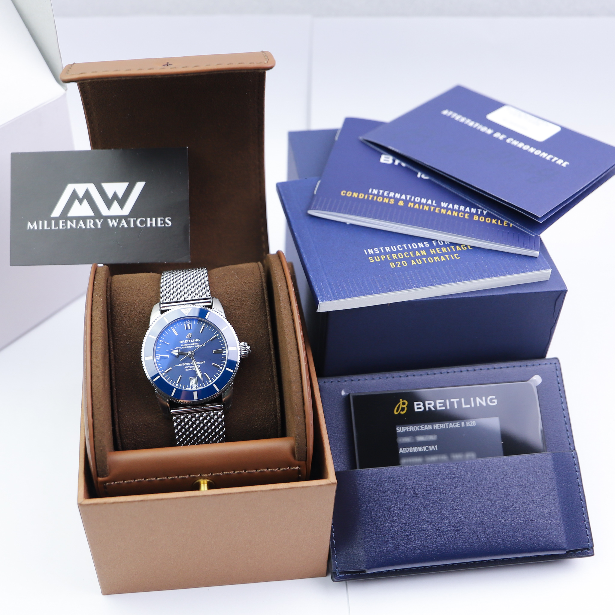 Selling an unworn Breitling Superocean Héritage II 42 Blue Dial Mesh reference AB2010161C1A1.