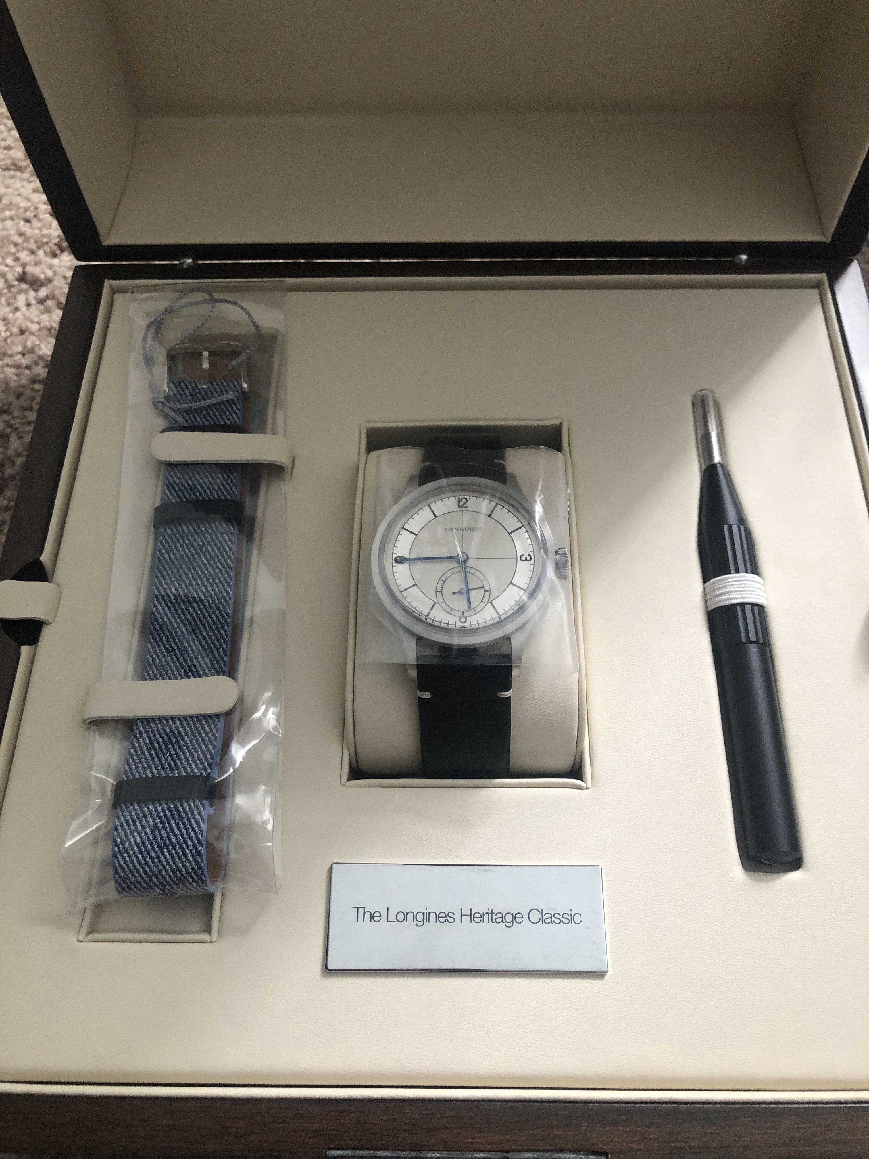 Another one leaving the stable in an effort to slim down the collection. For sale is my BNIB Longines Heritage Sector Dial. Purchased it recently, but haven’t gotten around to wearing it with all the new incomings. Took it out of the box to take pictures, and that’s been the extent of its life outside of storage.