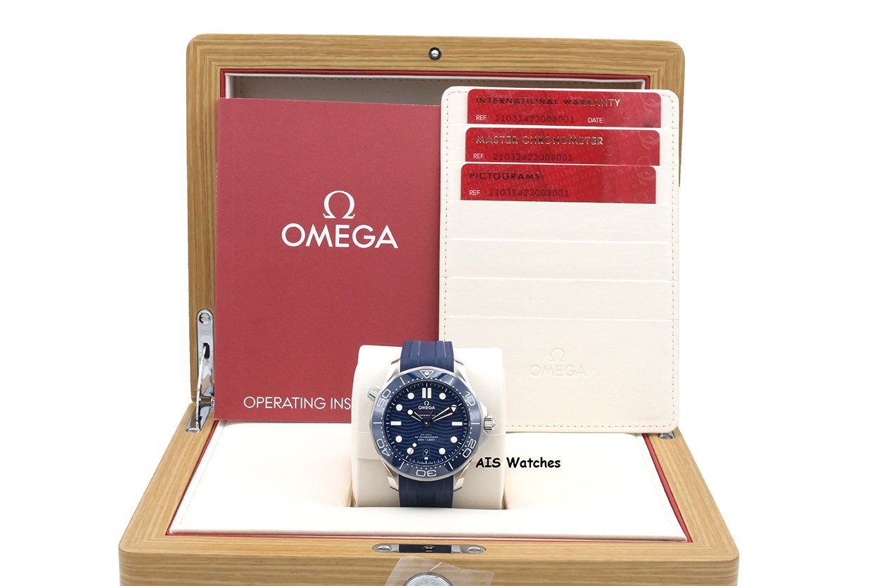 Up for sale is an BNIB Omega Seamaster 300M 42MM Diver Blue Wave Dial Rubber Strap 210.32.42.20.03.001 Box & Papers. The timepiece is Brand New / Unworn / NO Stickers.
