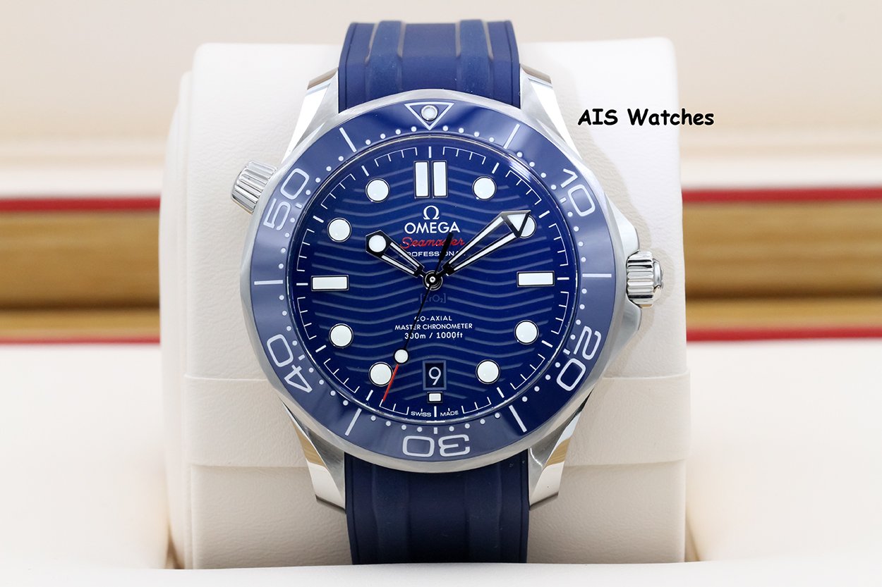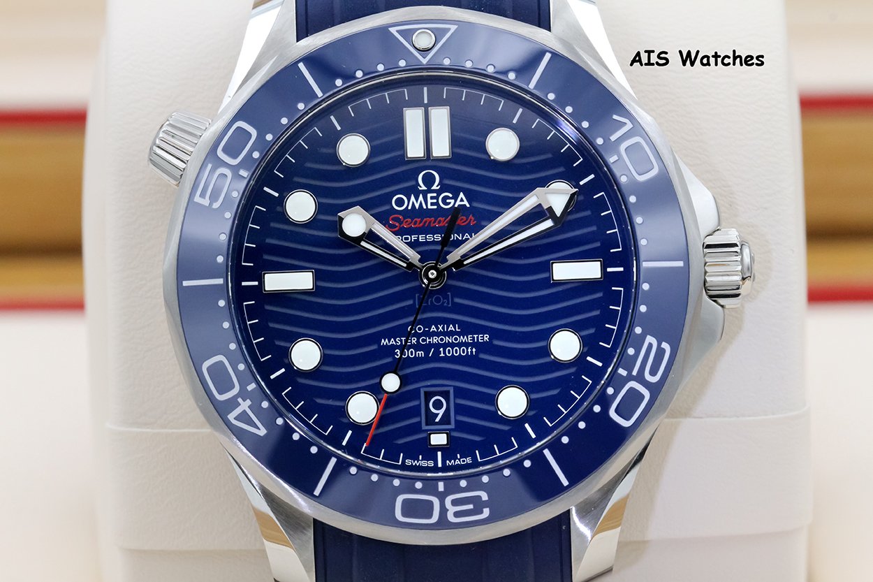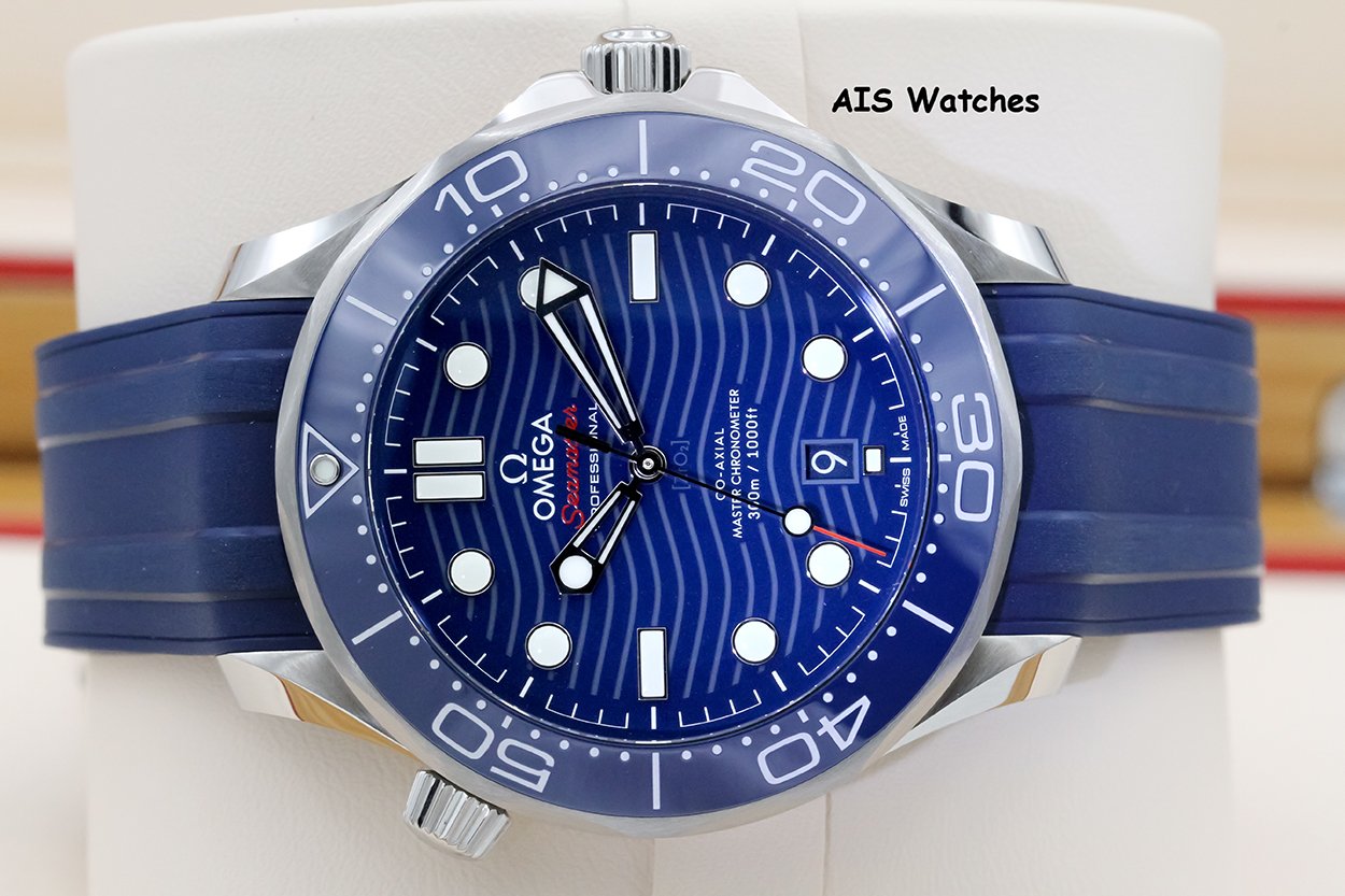 ** BNIB Omega Seamaster 300M 42MM Diver Blue Wave Dial on Rubber Strap