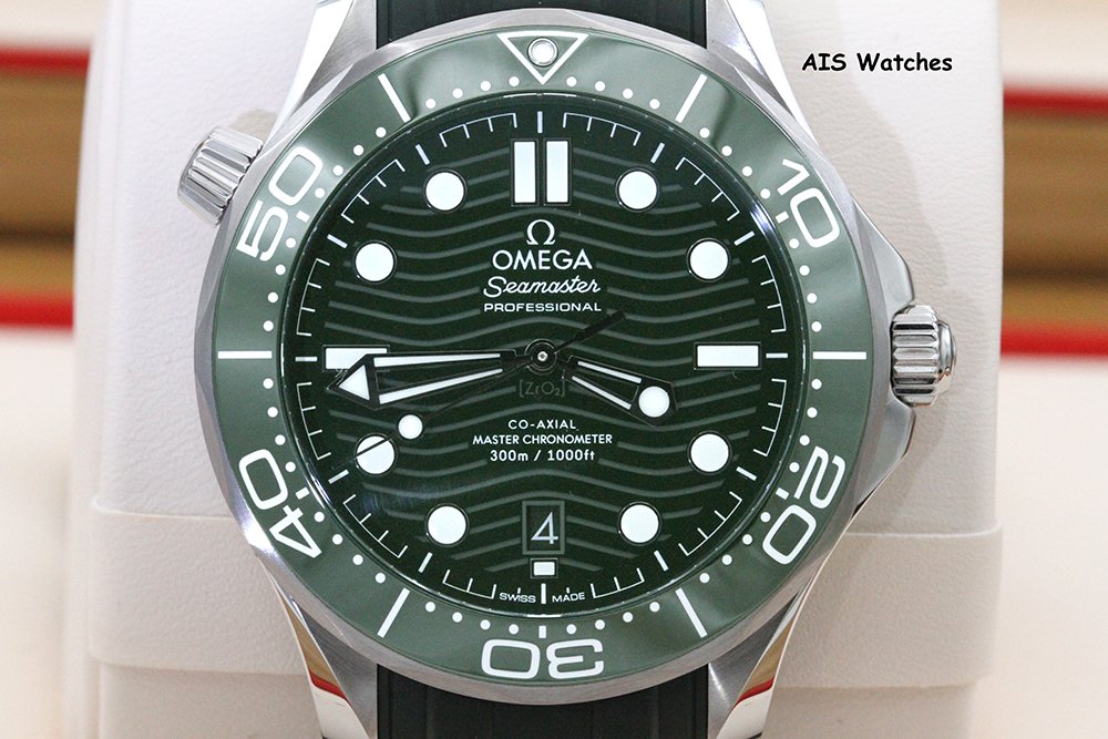 ** BNIB Omega Seamaster 300M 42MM Diver Green Wave Dial on Rubber Strap