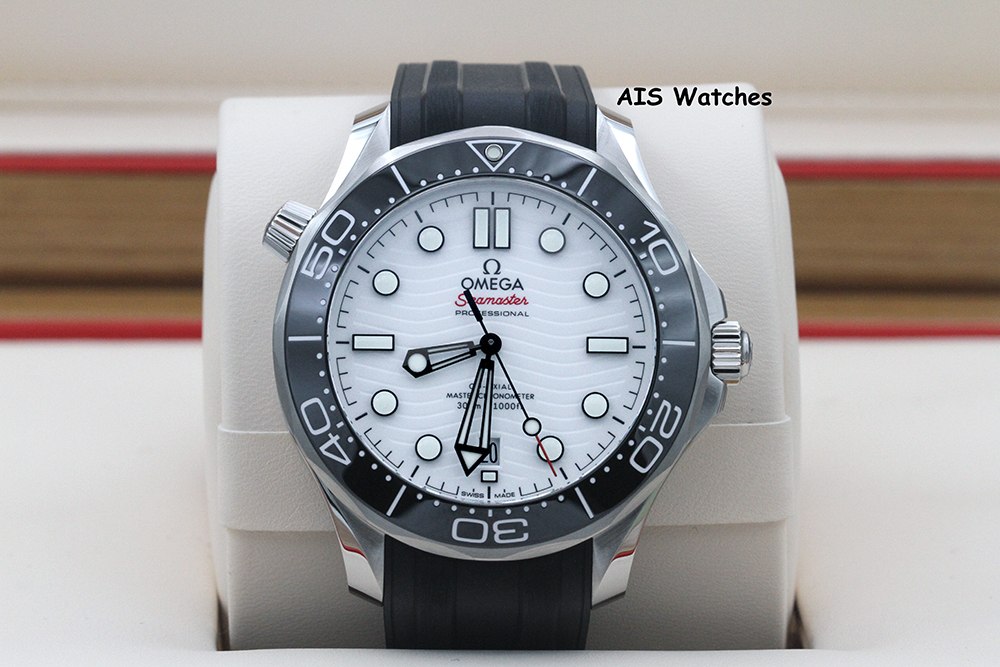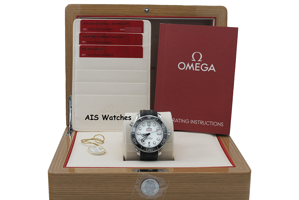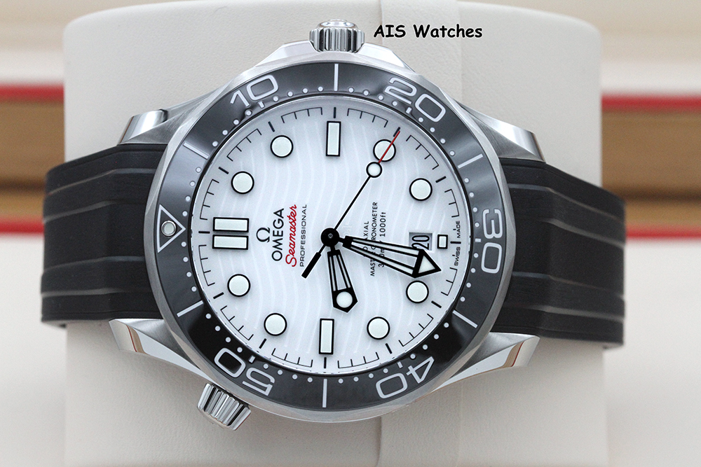 ** BNIB Omega Seamaster 300M 42MM Diver White Wave Dial on Rubber Strap