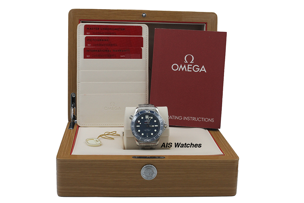 Up for sale is an BNIB Omega Seamaster 300M SS 42MM Diver Blue Wave Dial 210.30.42.20.03.001 Box & Papers. The timepiece Unworn / Unsized / AD Removed Stickers.