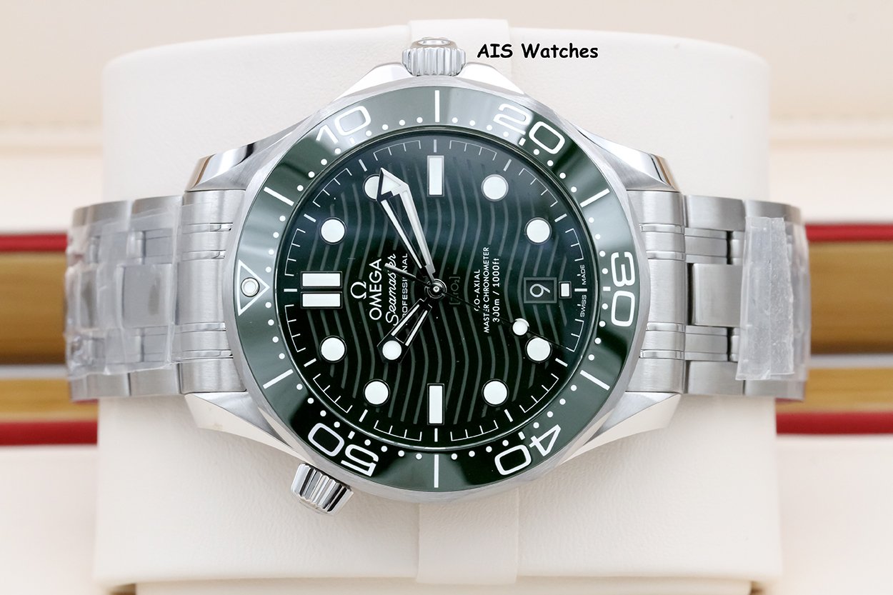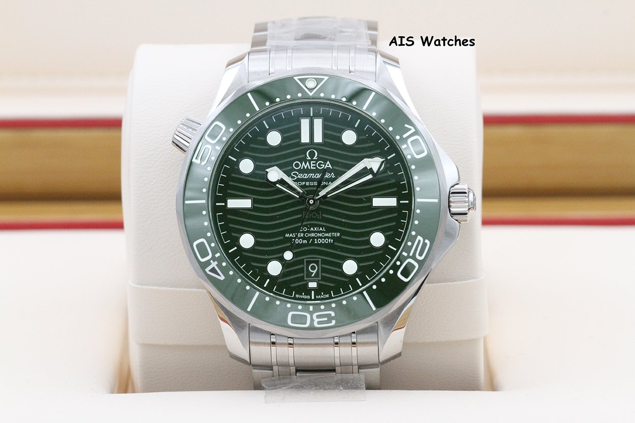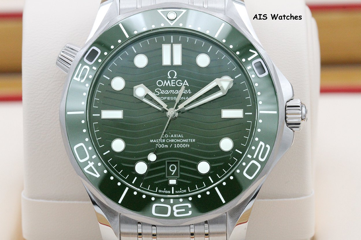 ** BNIB Omega Seamaster 300M SS 42MM Diver Green Wave Dial on Stainless Steel Bracelet