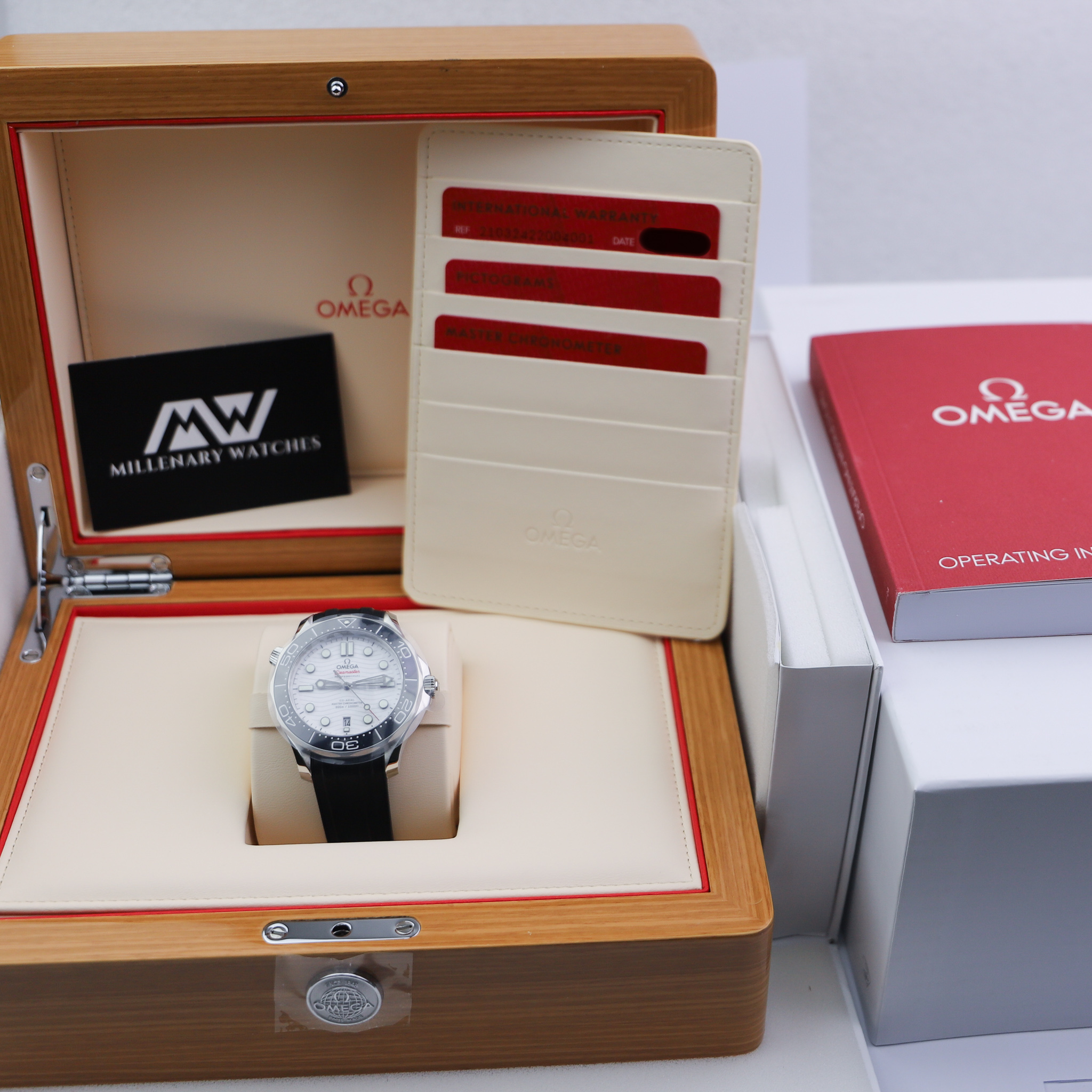 Selling a BNIB Omega Seamaster Diver 300M white dial on rubber strap ref 210.32.42.20.04.001. Comes complete with box and papers dated 2020 and with Omega's 5-year international warranty.