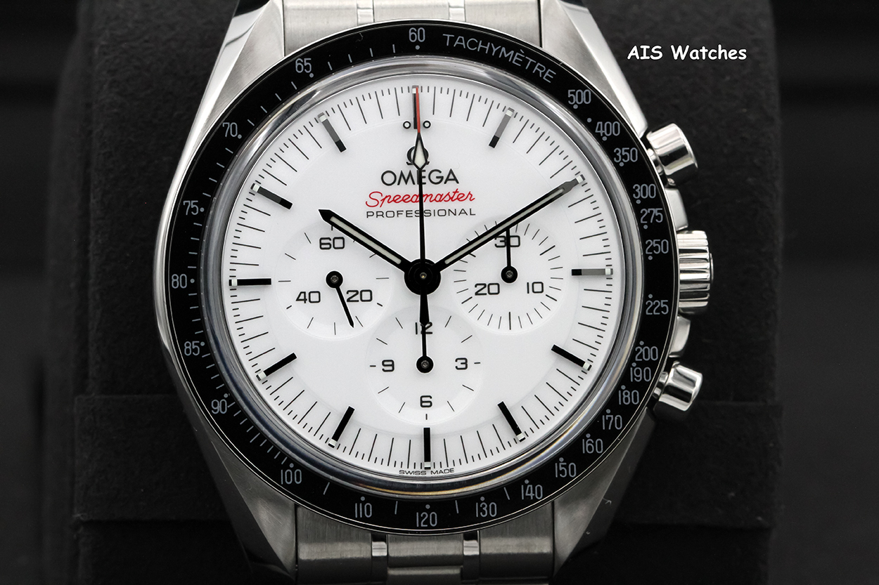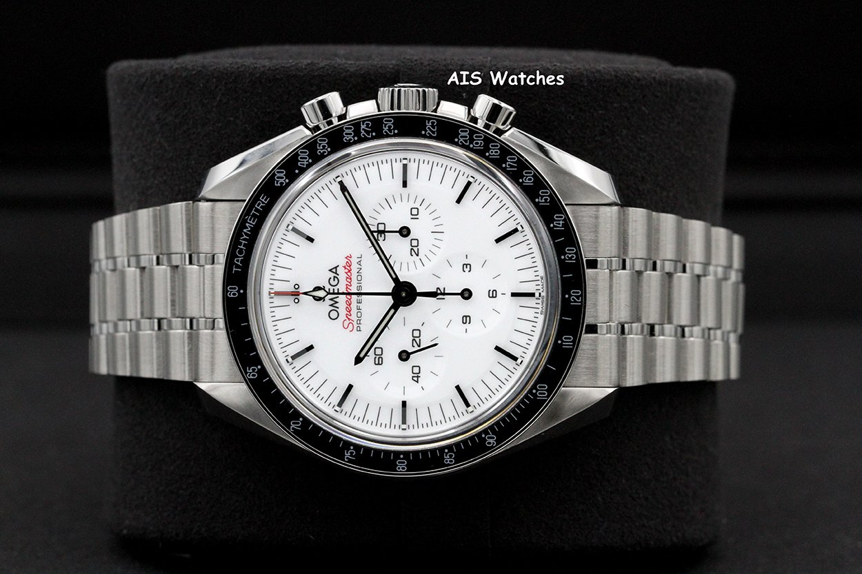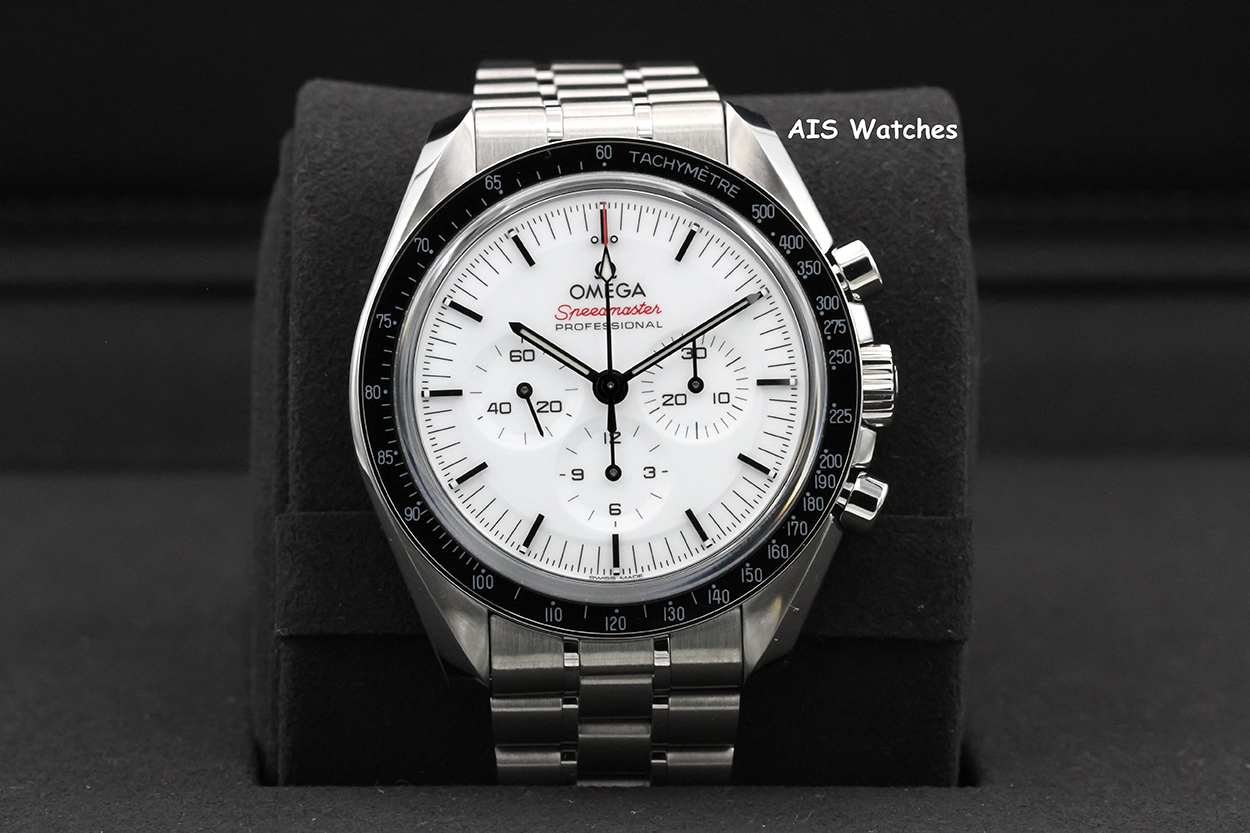 ** Omega SpeedMaster 3861 Moon Watch 310.30.42.50.04.001 White Dial Sapphire Sandwich Crystal Stainless Steel Bracelet