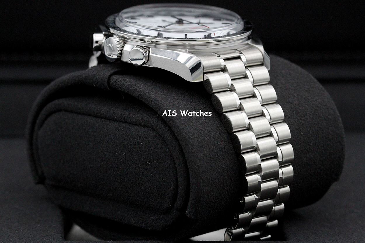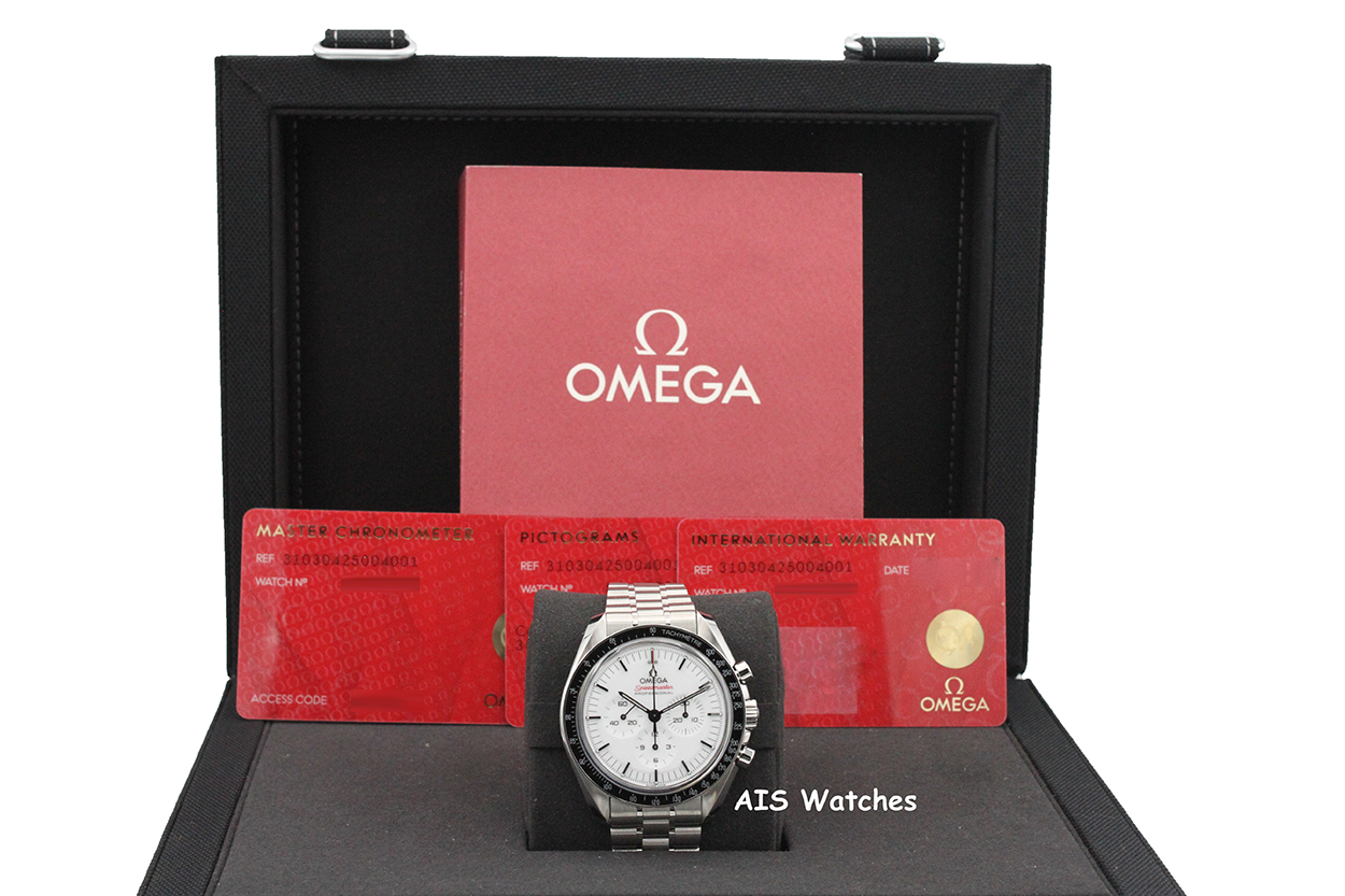 Up for sale is a BNIB Omega SpeedMaster 3861 MoonWatch 310.30.42.50.04.001 White Dial Sapphire Sandwich Crystal on Stainless Steel Bracelet Box & Papers. The timepiece is Brand New / Unworn / Unsized / No Stickers.