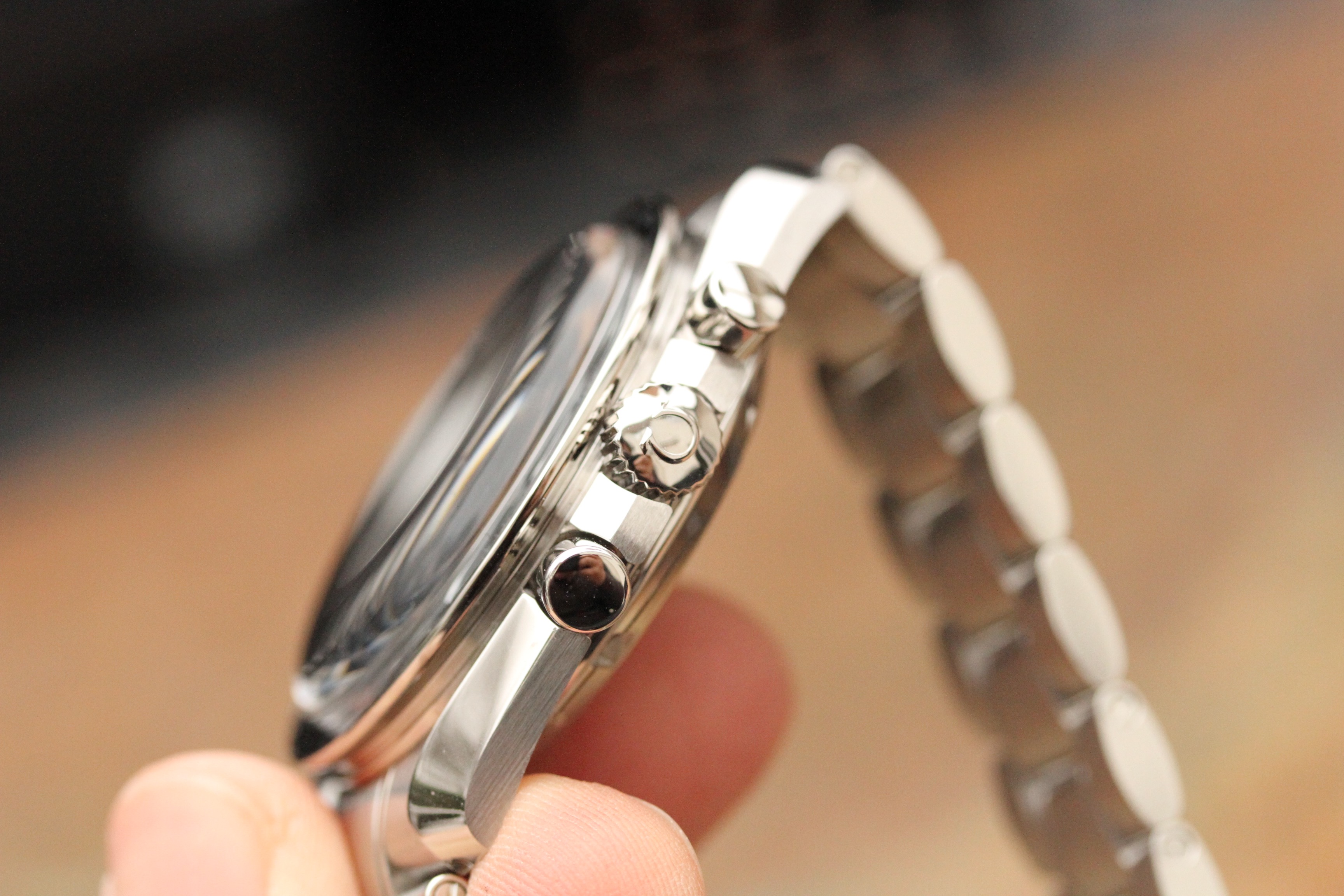 new reference 311.30.42.30.01.005 with cal. 1861, updated bracelet, and large presentation box with Omega tool, straps, loupe, medallion.