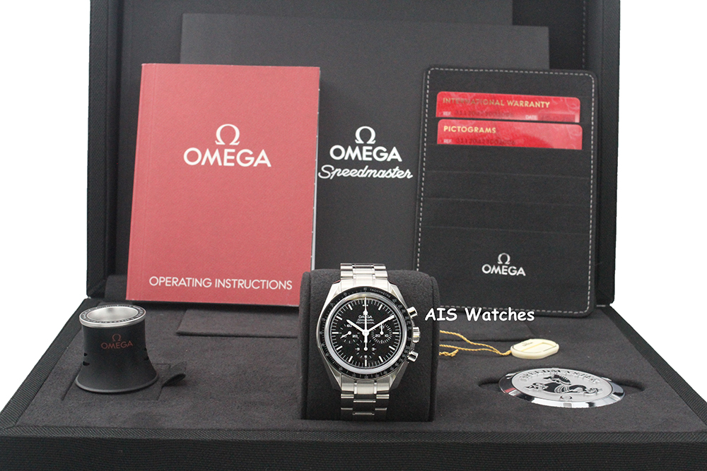** BNIB Omega SpeedMaster Moon Watch 311.30.42.30.01.006 Sapphire Sandwich Crystal on Stainless Steel Bracelet