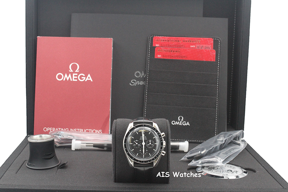 Up for sale is a BNIB Omega Speedmaster Moon Watch 311.33.42.30.01.001 Hesalite Crystal on Leather Strap Box & Papers. The timepiece is Brand New / Unworn / Few Stickers Intact.