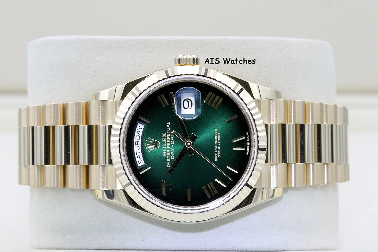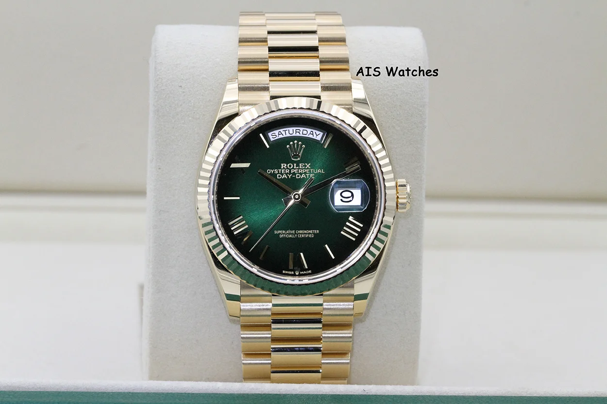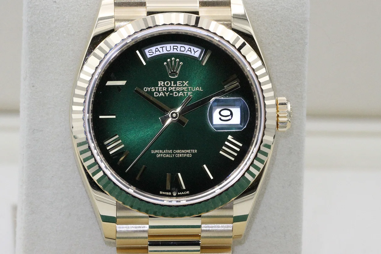 ** BNIB Rolex 128238 DayDate 36MM DD36 Yellow Gold Green Ombre Roman Dial