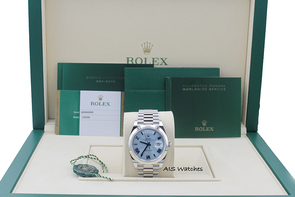 ** BNIB Rolex 228206 DayDate 40MM DD40 Platinum Ice Blue Quadrant Roman Dial