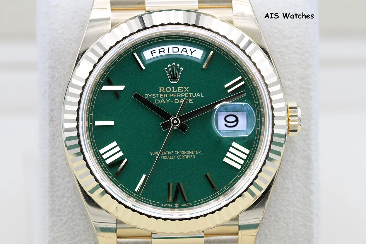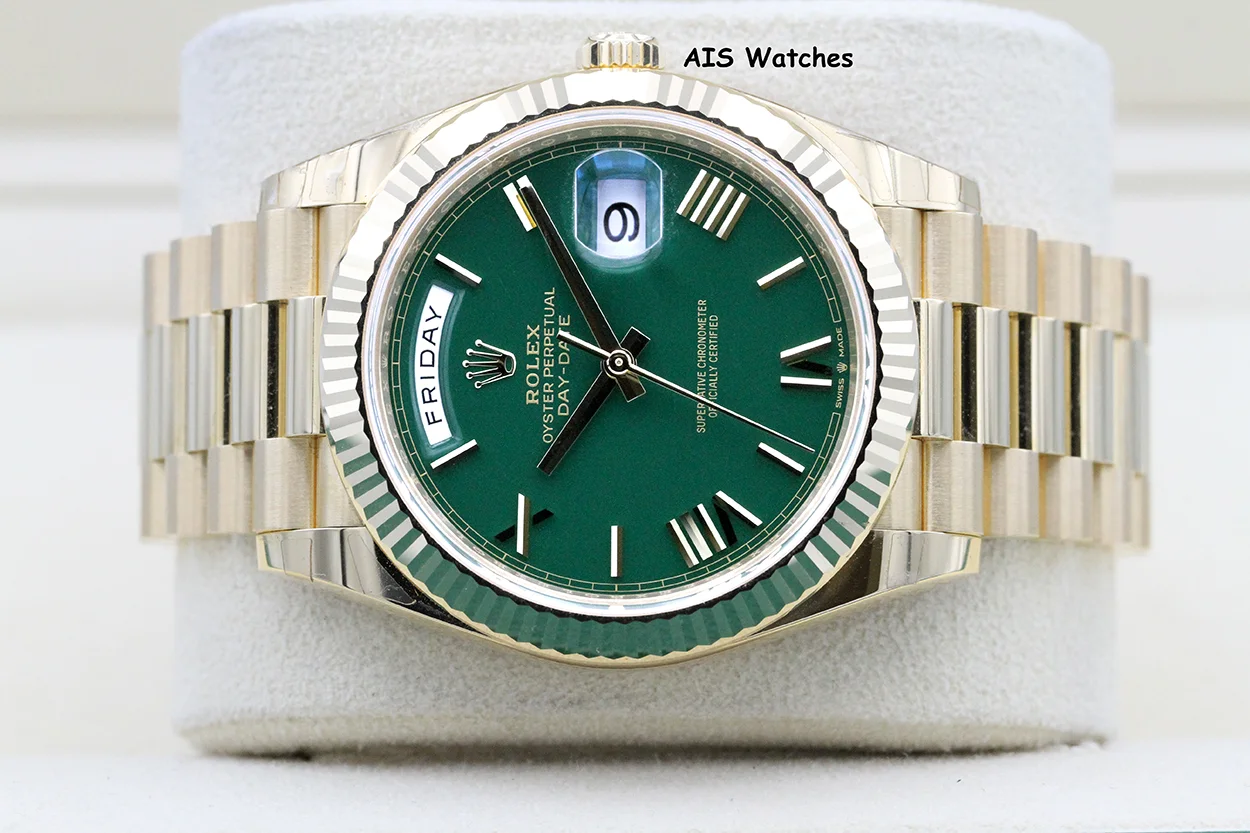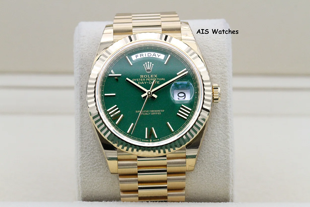 ** BNIB Rolex 228238 DayDate 40MM DD40 Yellow Gold Green Roman Dial