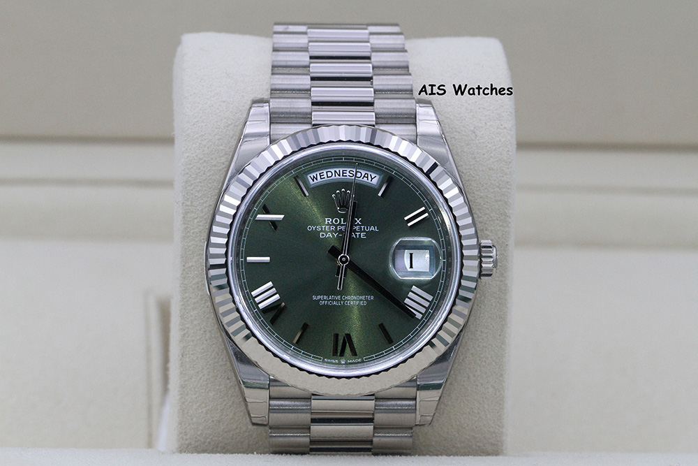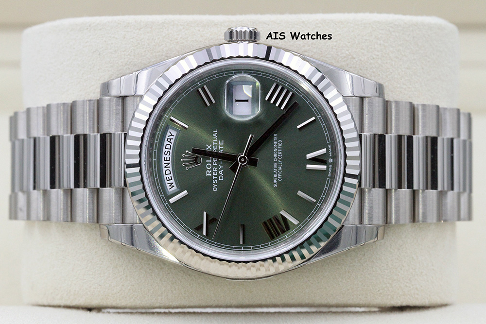 ** BNIB Rolex 228239 DayDate 40MM DD40 White Gold Green Roman Dial - Sealed