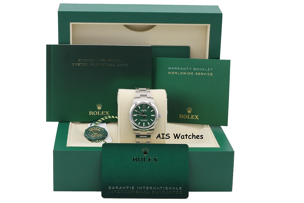 Up for sale is a BNIB Rolex 277200 Oyster Perpetual 31 MM Green Dial Box & Papers. The timepiece is Unworn / Unsized / AD took Stickers off.