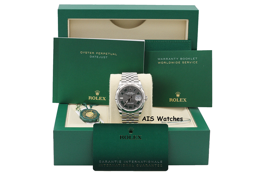 ** BNIB Rolex 126234 Datejust 36MM Jubilee Slate Grey Green Roman Wimbledon Dial