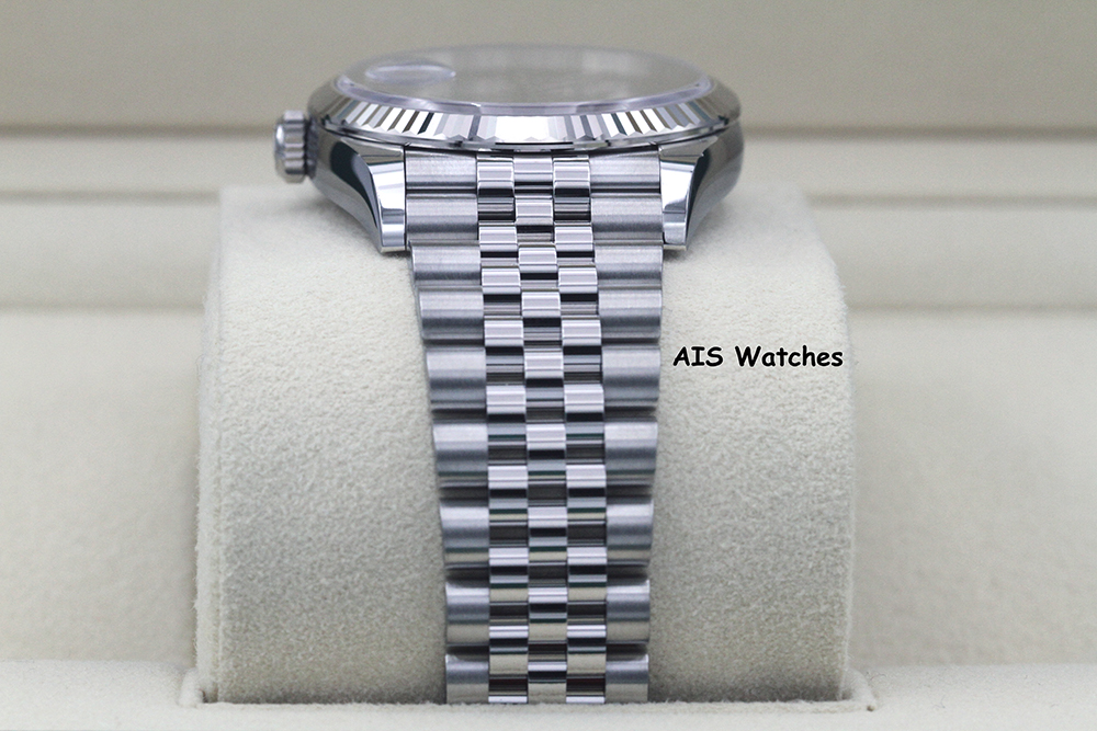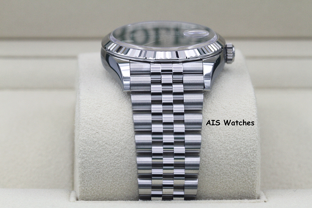 Up for sale is this Classic BNIB Rolex Datejust 36 MM 126234 on Jubilee Bracelet / Slate Grey Green Roman Wimbledon Dial Stainless Steel / 18K WG Fluted Bezel Box & Papers. The timepiece Unworn / Unsized / AD Took Stickers Off.