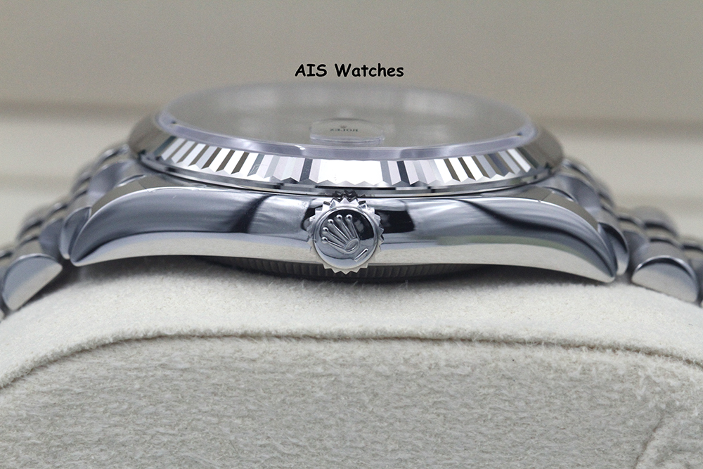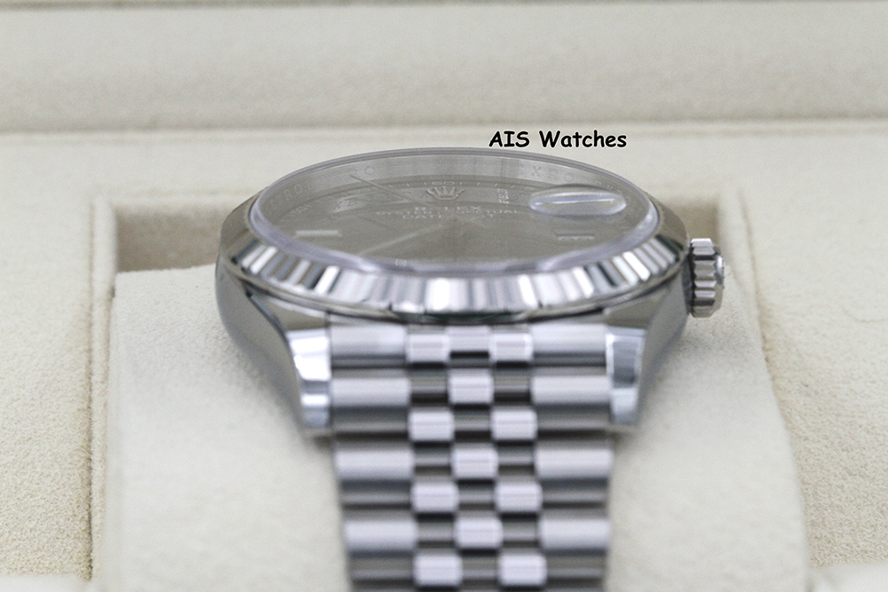 Up for sale is this Classic BNIB Rolex Datejust 36 MM 126234 on Jubilee Bracelet / Slate Grey Green Roman Wimbledon Dial Stainless Steel / 18K WG Fluted Bezel Box & Papers. The timepiece Unworn / Unsized / AD Took Stickers Off.