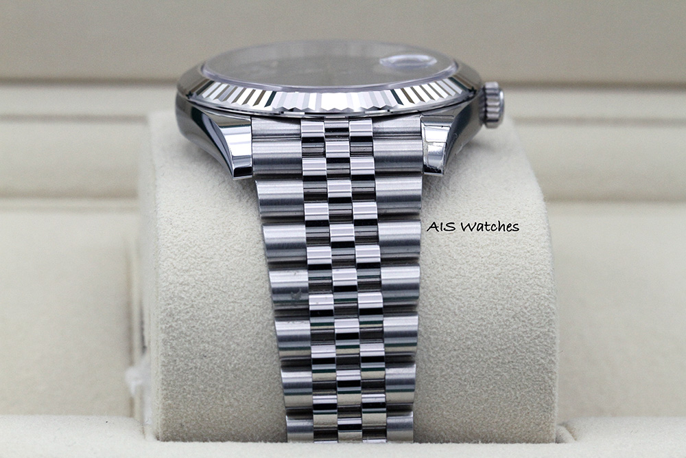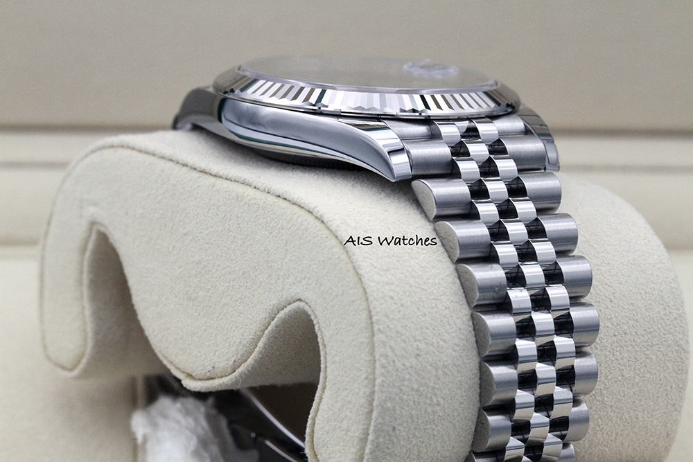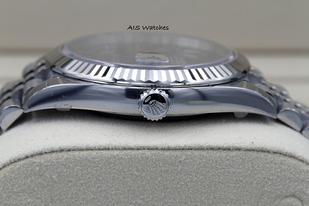 Up for sale is this Classic BNIB Rolex Datejust 41 MM 126334 Blue Roman Dial on Stainless Steel Jubilee Bracelet with 18K WG Fluted Bezel Box & Papers. The timepiece is unworn/unsized with few stickers intact.