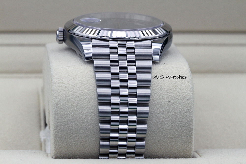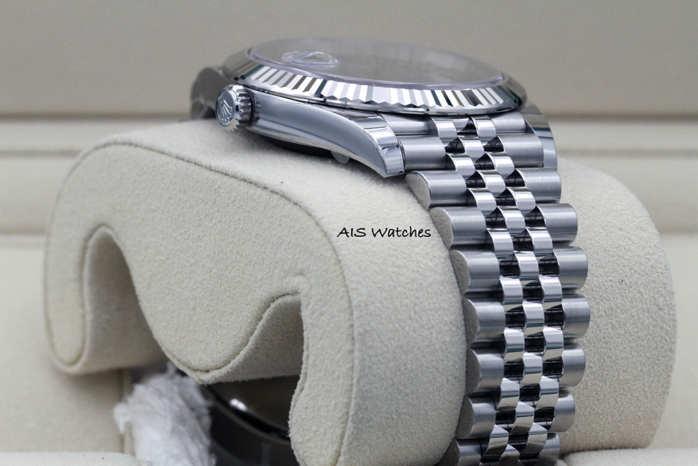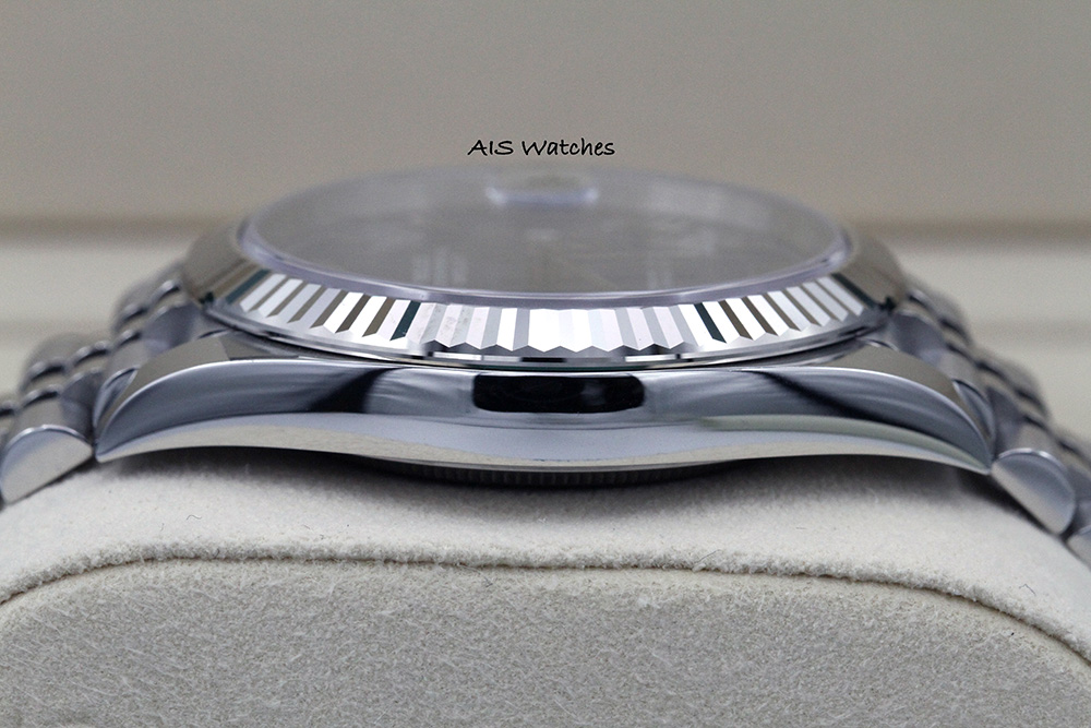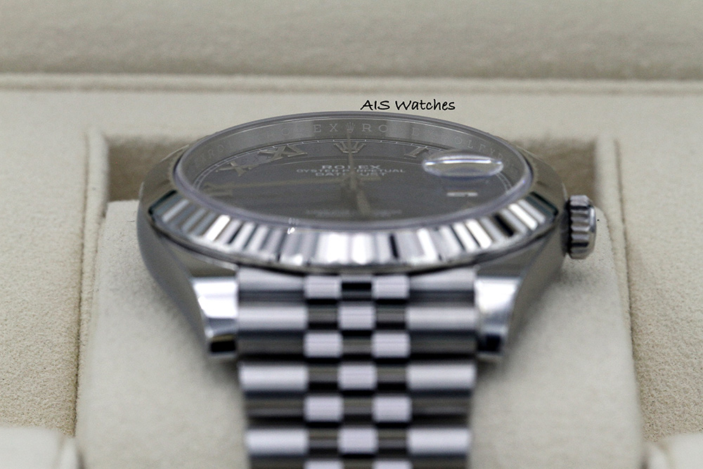 Up for sale is this Classic BNIB Rolex Datejust 41 MM 126334 Blue Roman Dial on Stainless Steel Jubilee Bracelet with 18K WG Fluted Bezel Box & Papers. The timepiece is unworn/unsized with few stickers intact.
