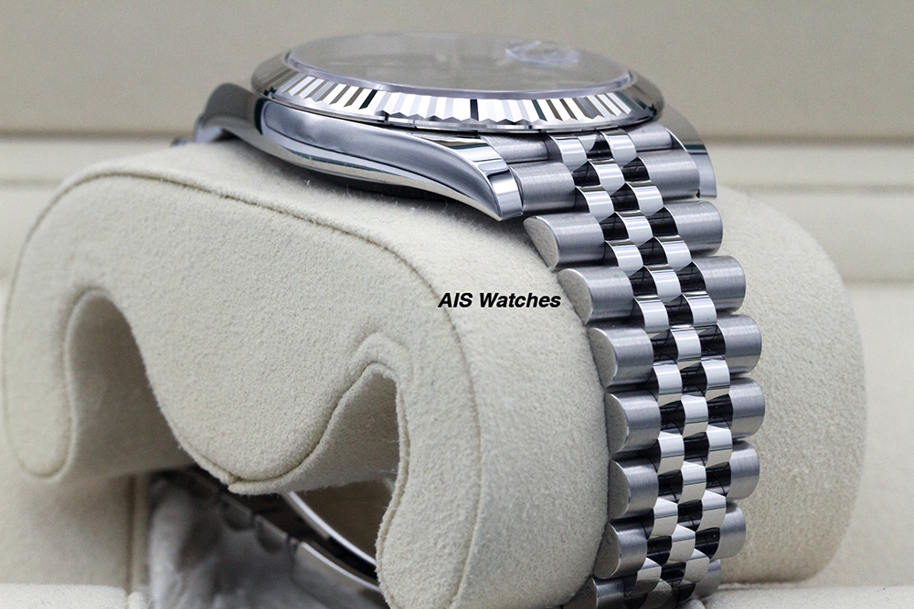 Up for sale is a Classic BNIB Rolex Datejust 41 MM 126334 Blue Stick Dial Jubilee Bracelet Stainless Steel with 18K WG Fluted Bezel Box & Papers. The timepiece is Unworn / Unsized / AD took Stickers off.