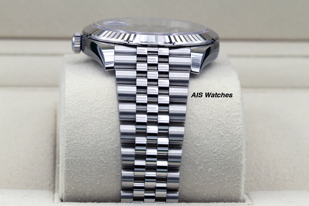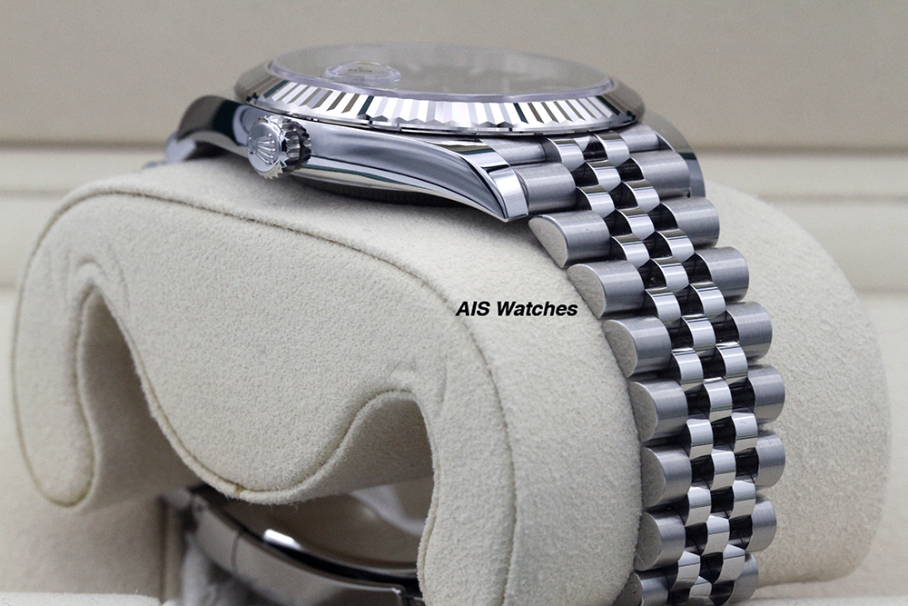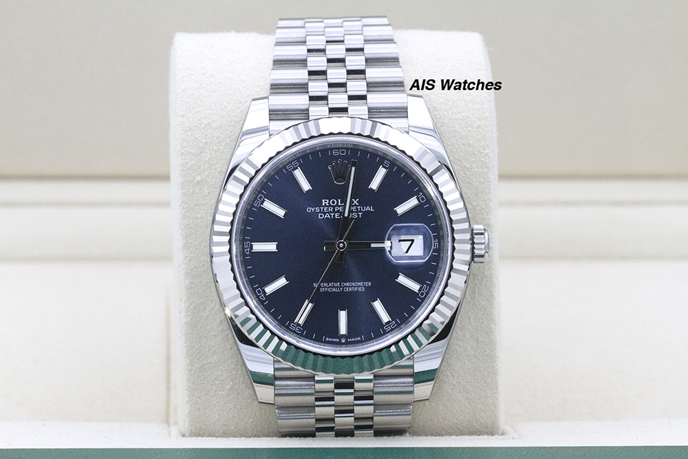 Up for sale is a Classic BNIB Rolex Datejust 41 MM 126334 Blue Stick Dial Jubilee Bracelet Stainless Steel with 18K WG Fluted Bezel Box & Papers. The timepiece is Unworn / Unsized / AD took Stickers off.