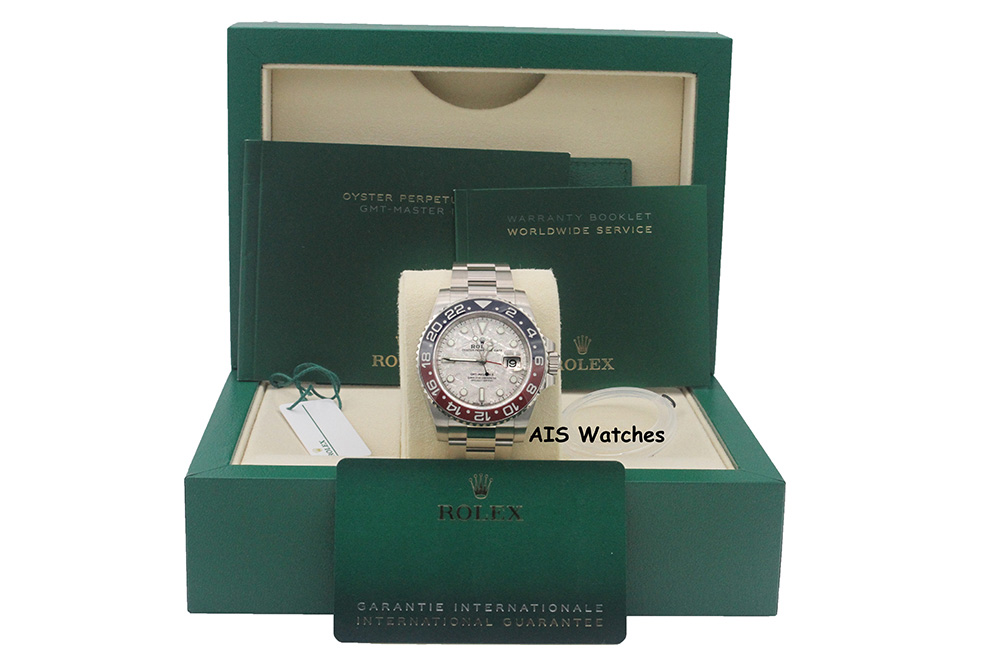 Up for sale is BNIB Rolex GMT-Master II 126719BLRO 18K White Gold Pepsi Ceramic Meteorite Dial with Box & Papers. The timepiece is Unworn / Unsized / AD took the stickers off.