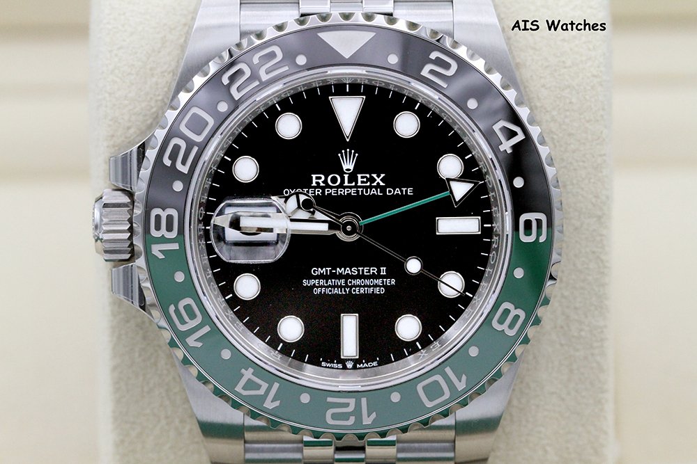 Up for sale is a BNIB Rolex GMT Master II 126720VTNR Sprite Lefty Jubilee Bracelet Black and Green Ceramic Bezel Box & Papers. The timepiece is Brand New / Unworn / Unsized / AD took Stickers off.