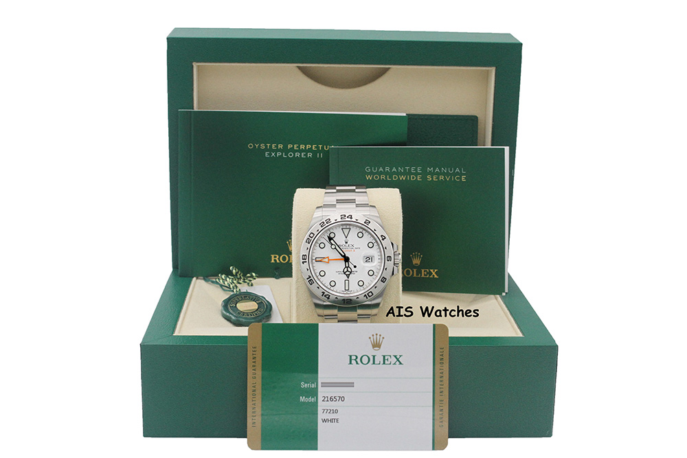 Up for sale is a BNIB Rolex Polar Explorer II 216570 White Dial 42mm Random Serial Box & Papers - Sealed. The timepiece is Unworn / Unsized / Stickers Intact.