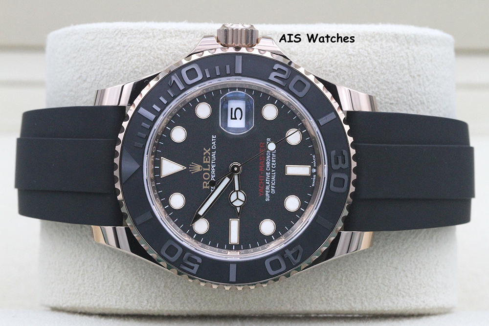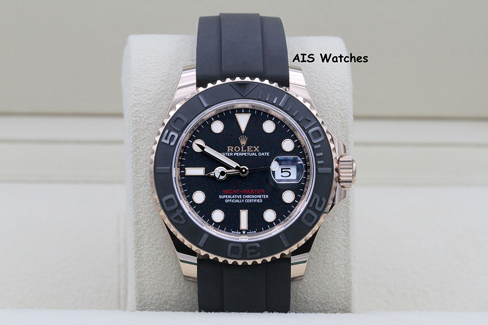 ** BNIB Rolex Yachtmaster 126655 Rose Gold OysterFlex with updated Glide Lock Clasp
