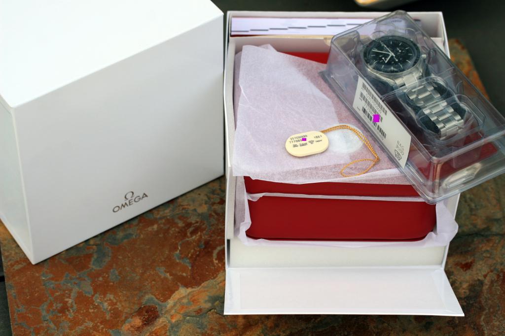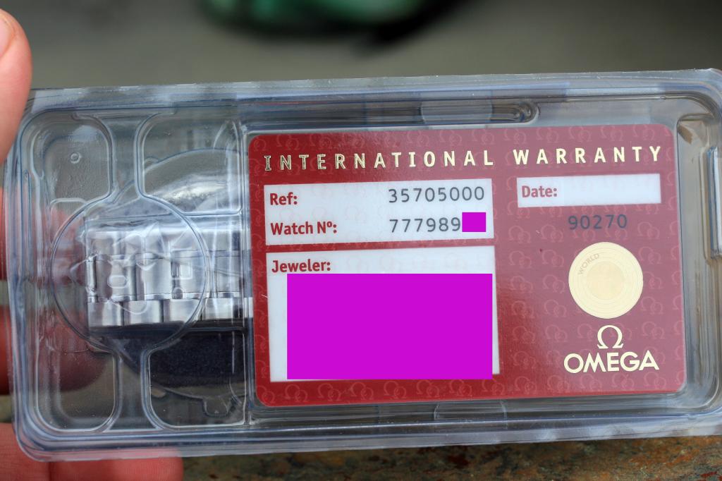 Full set with all boxes, cards, and hang tag. Omega warranty card is Omega AD stamped and will be dated at time of your purchase.
