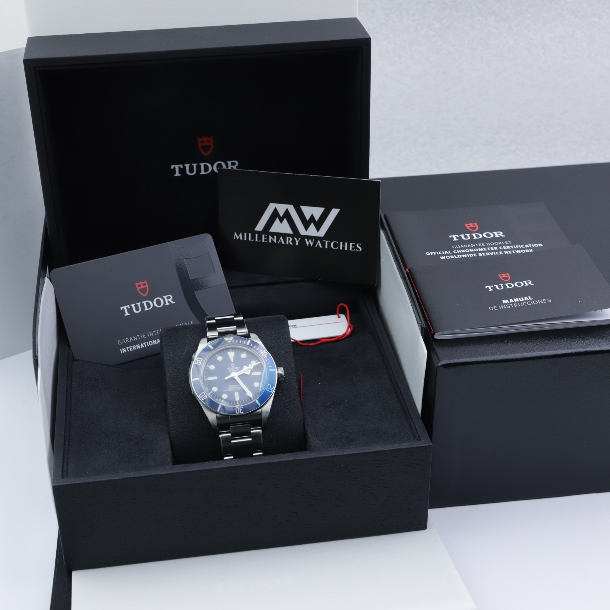 Selling a BNIB Tudor Heritage Black Bay ref 79030B BLUE. The watch comes unsized and with full stickers. Delivered complete with box and papers dated 2021 and with Tudor's 5-year international warranty.