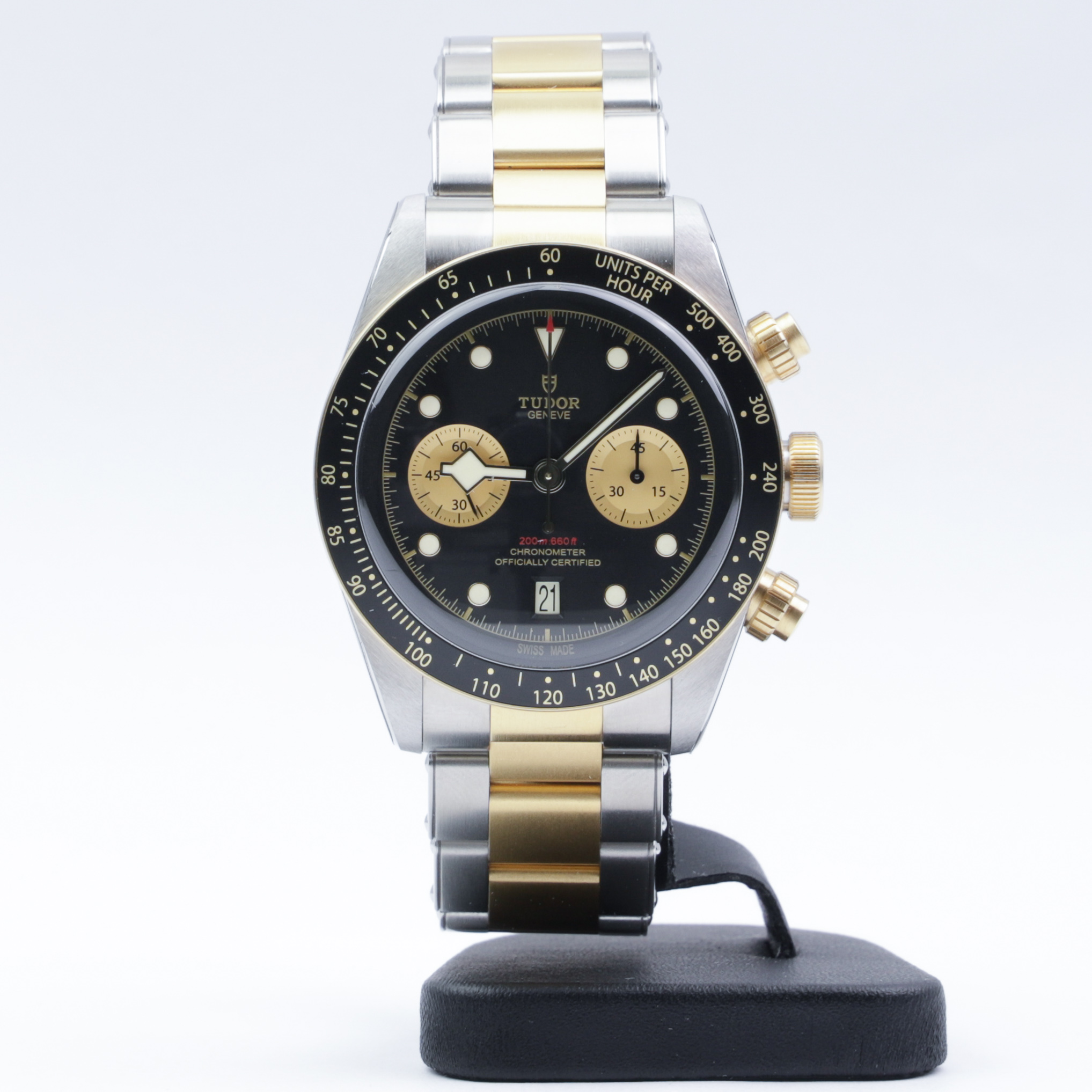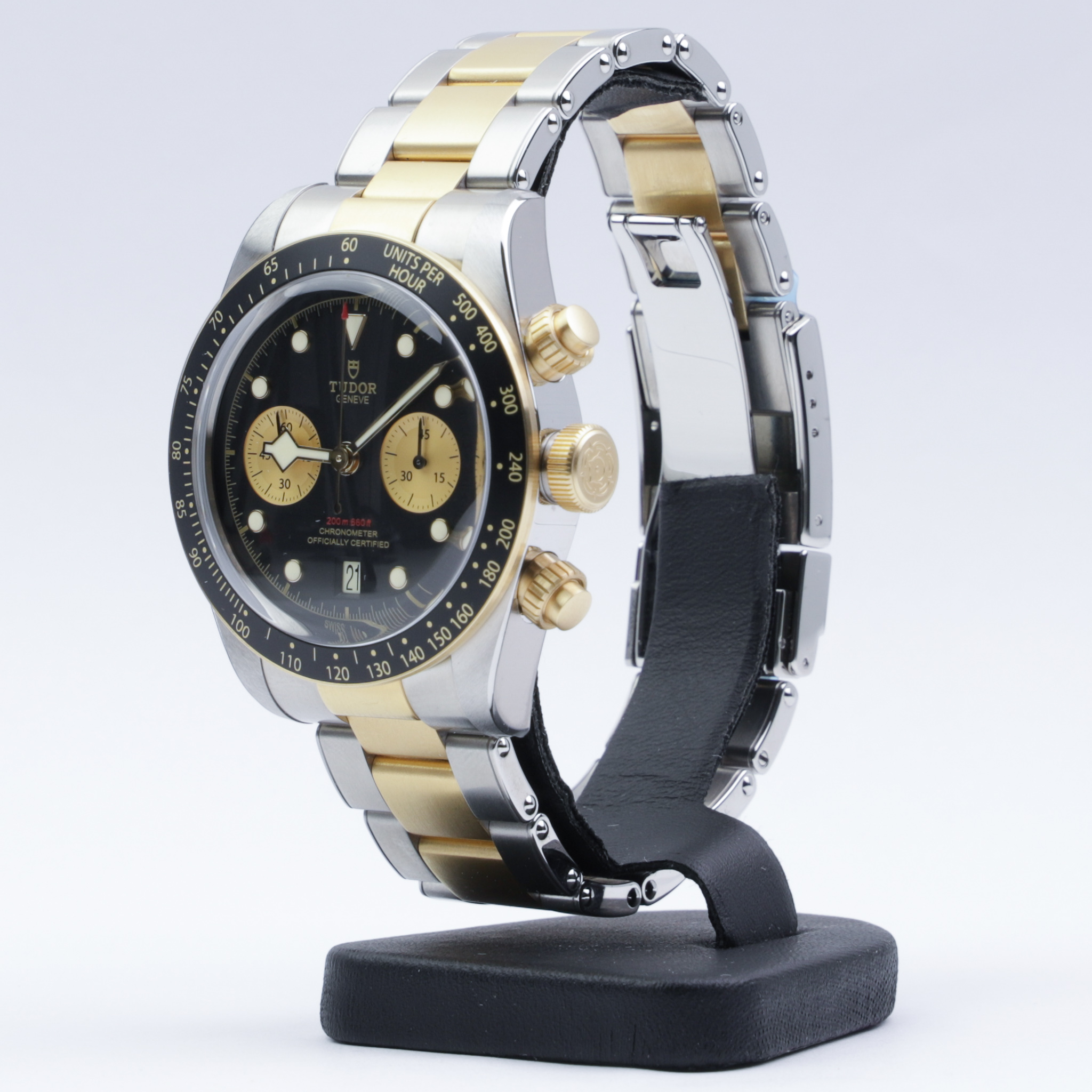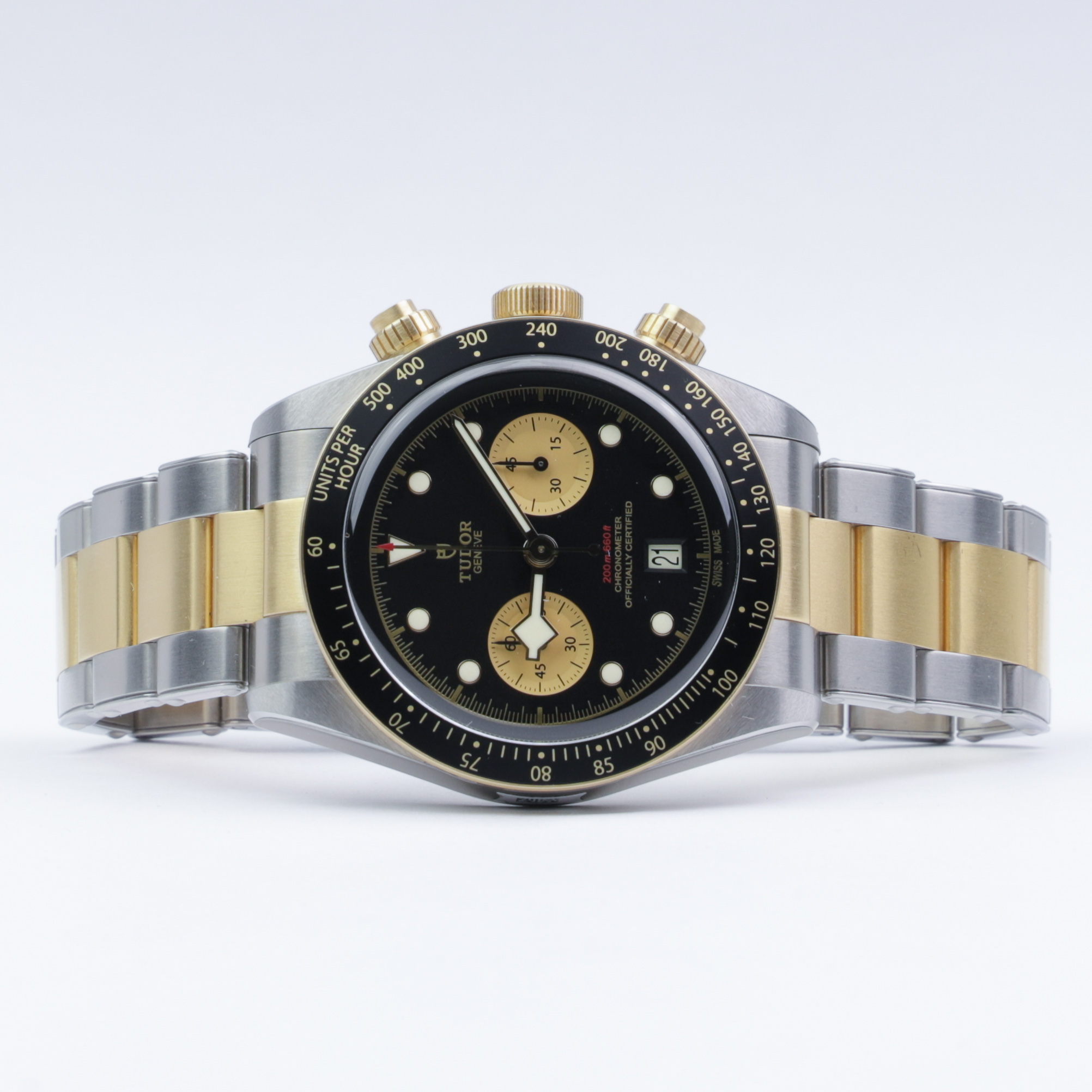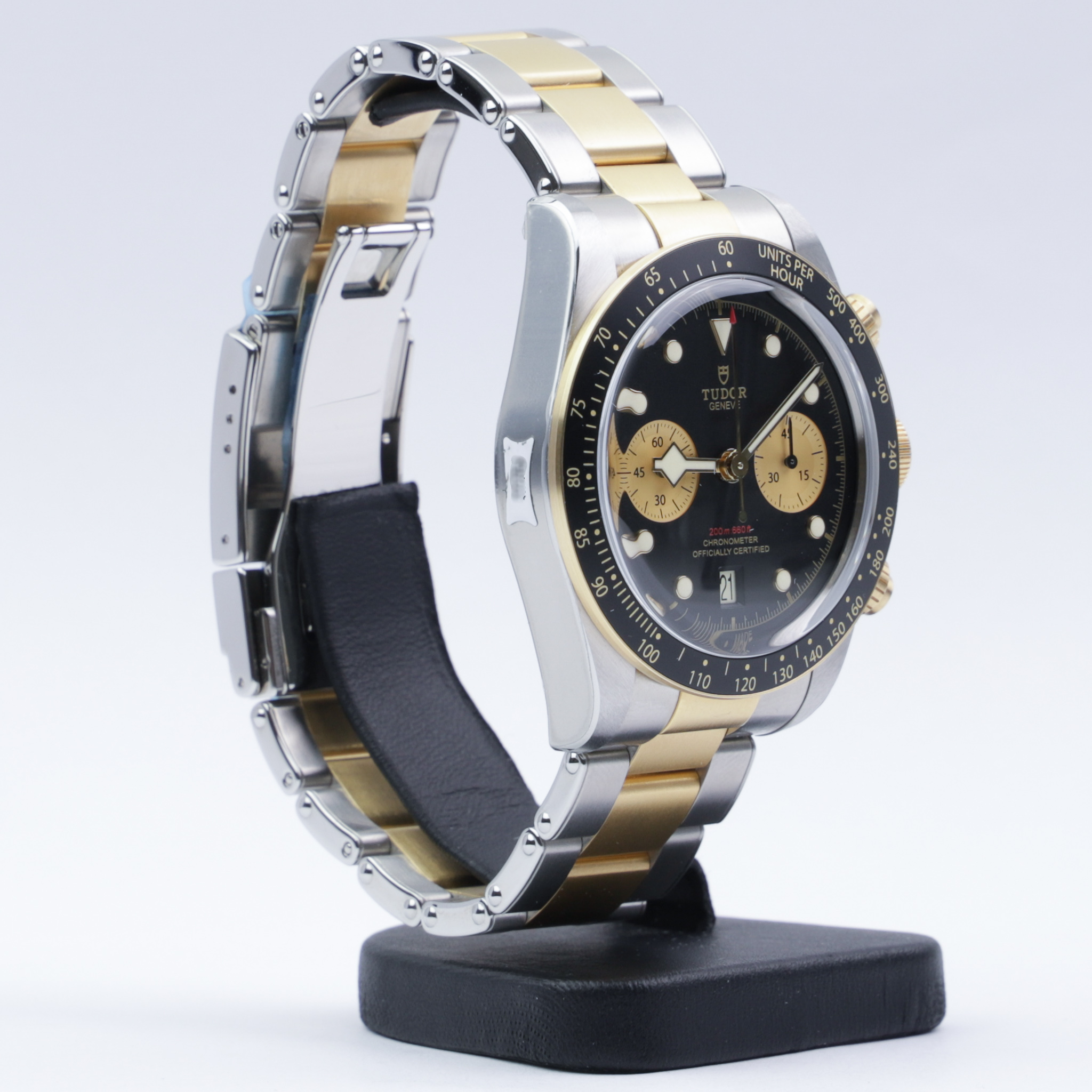 Selling an unworn Tudor Black Bay Chronograph Gold&Steel reference 79363N on bracelet.