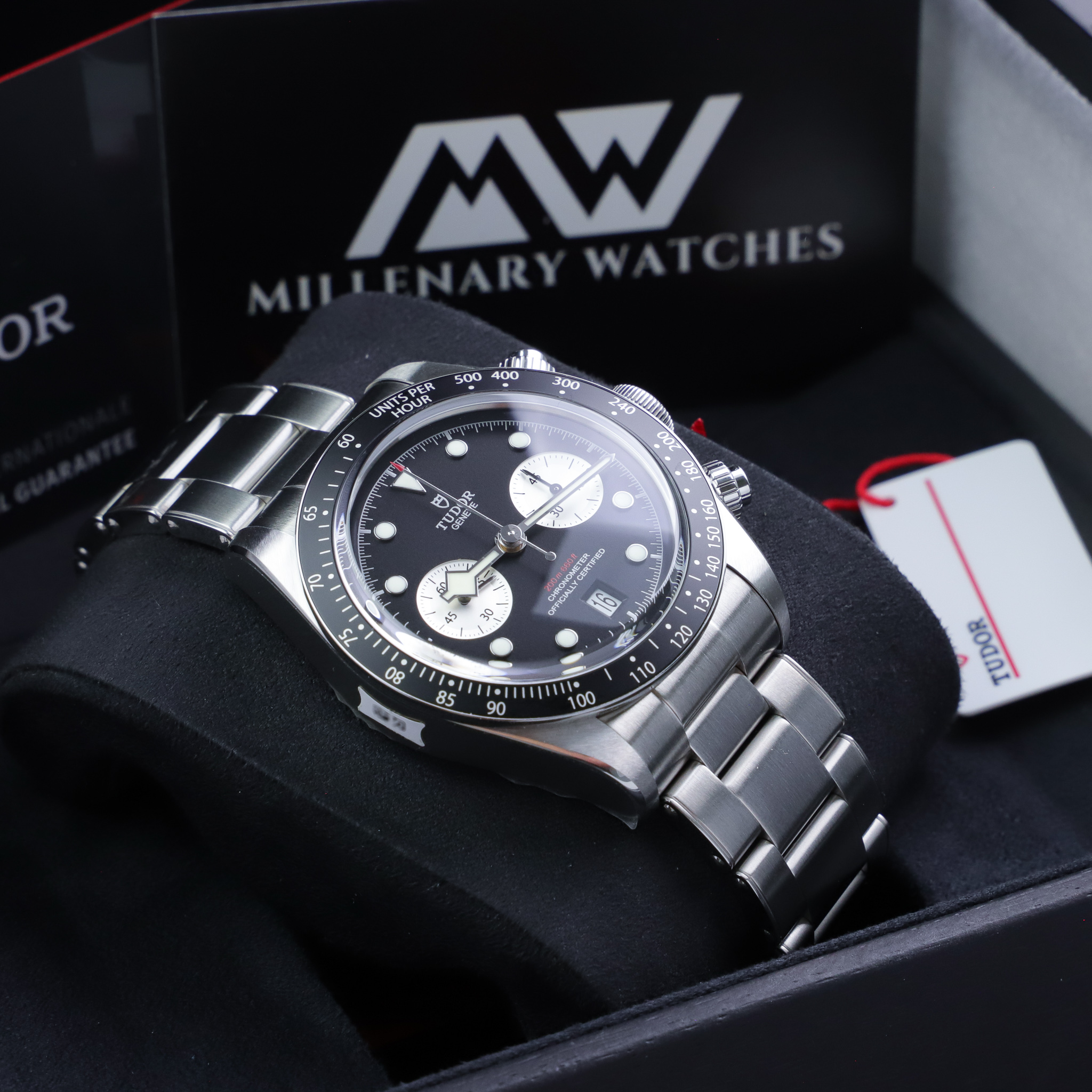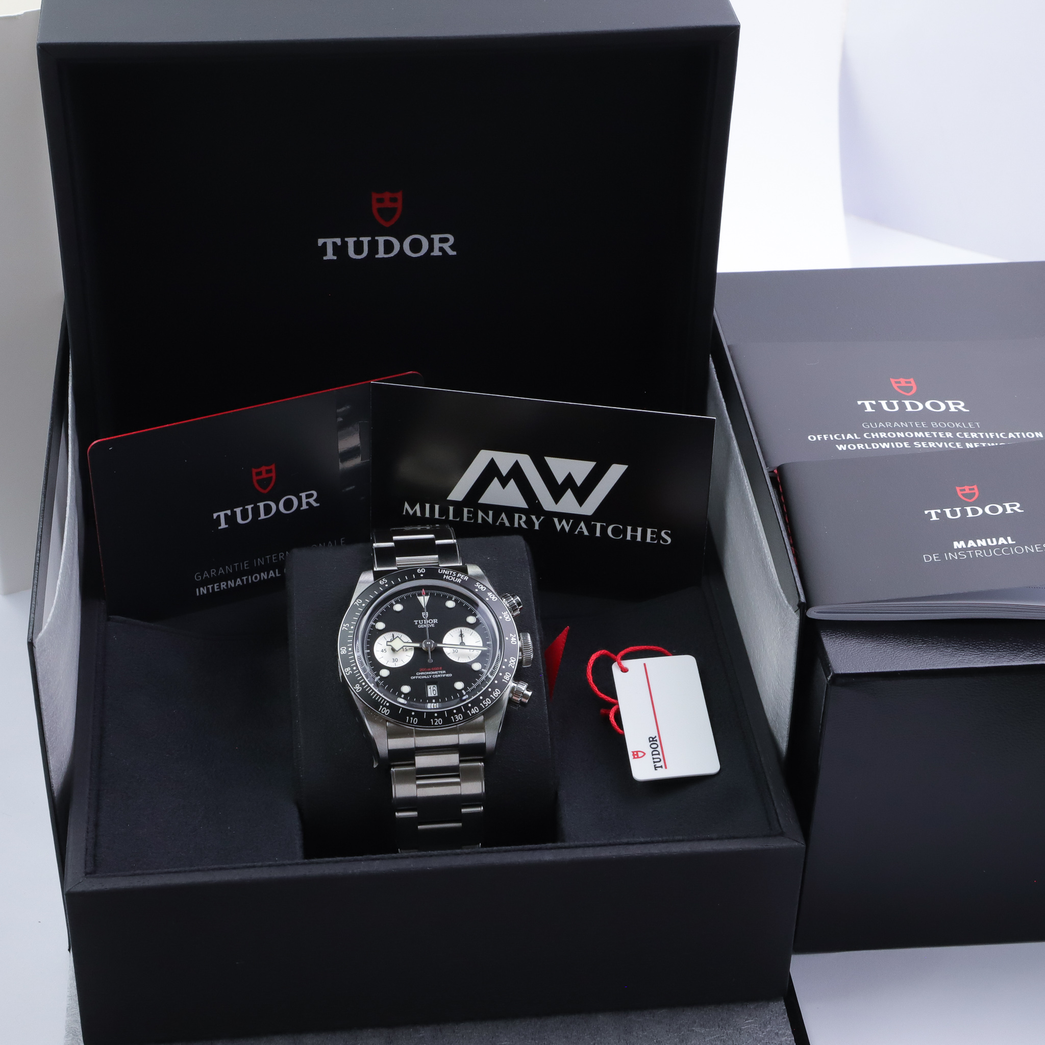 Selling a BNIB Tudor Black Bay chronograph reference 79360N complete with box and papers dated 2021. The watch is never worn and has full stickers. It includes Tudor's 5-year international warranty.