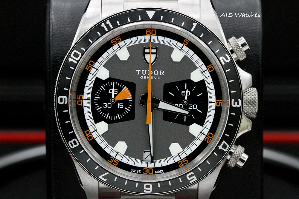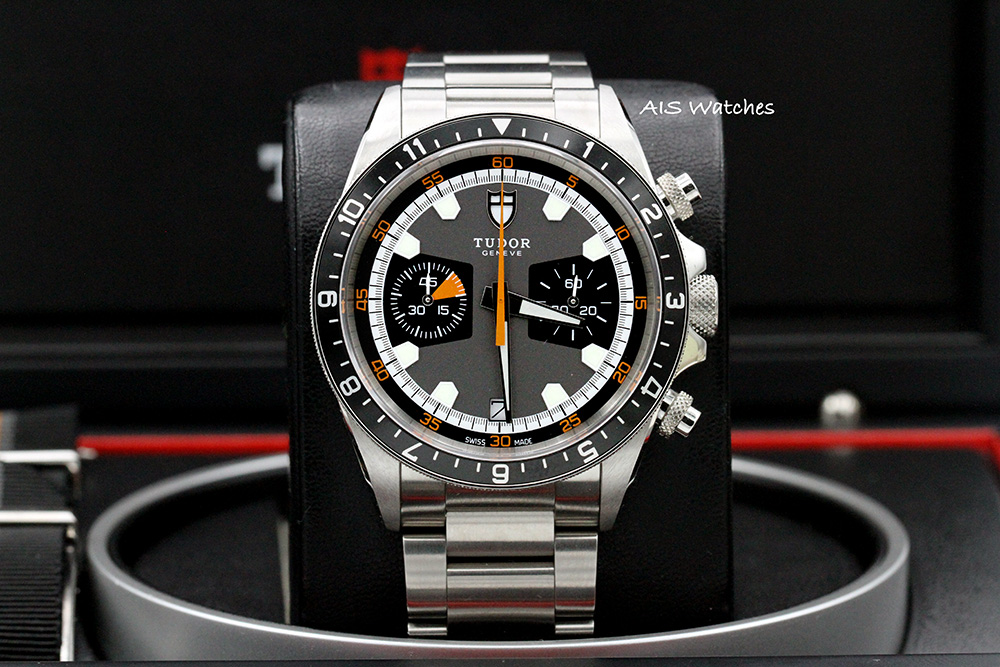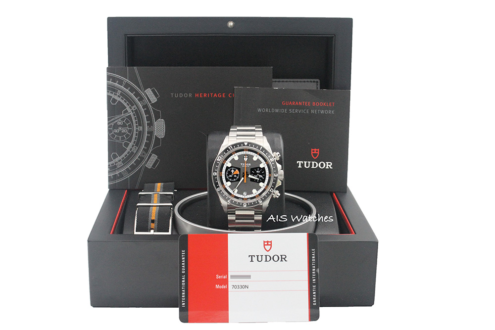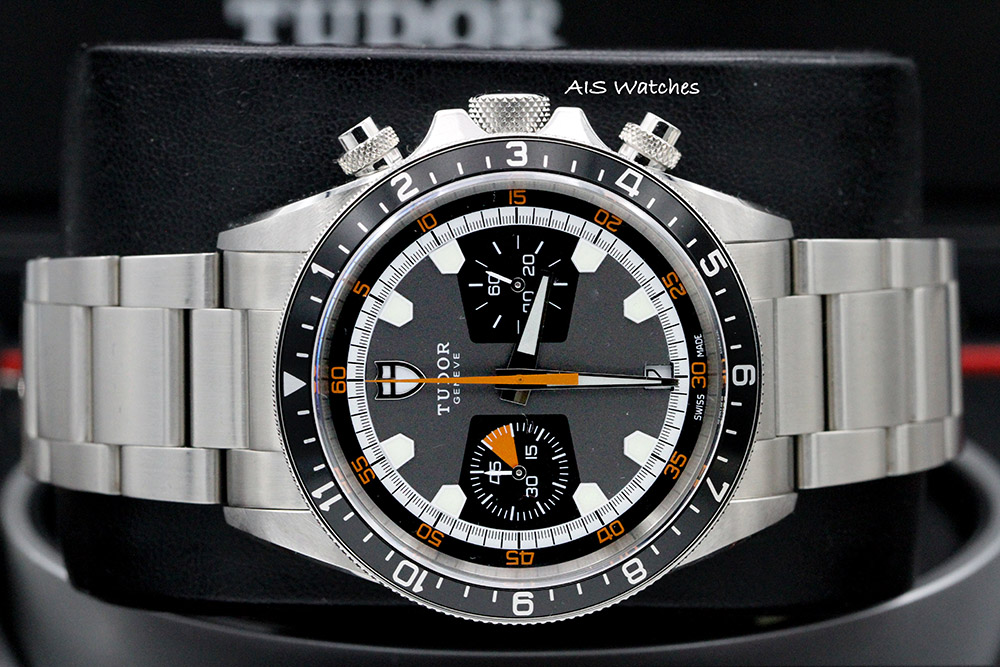 ** BNIB Tudor Heritage Chronograph 70330 Black / Gray Dial Stainless Steel Bracelet