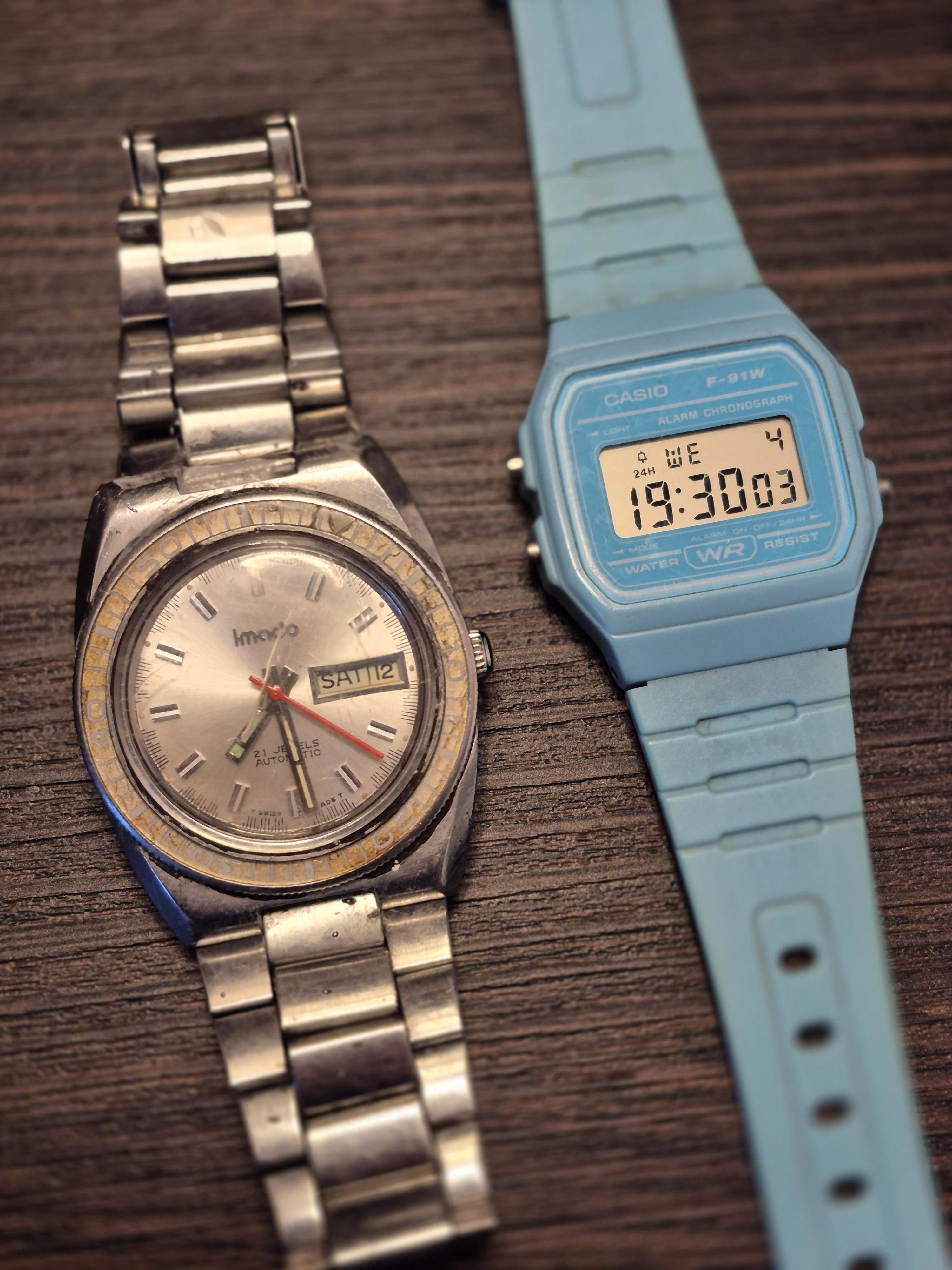 Since 1247 there has been a market held in the town. Sadly today only a few ( around 6) traders carry on the tradition in the form of a flea market/bootsale. Most of the traders come as a social event as much as anything i believe and it's certainly not a bustling place. Anyhow today when I was looking through old books, spares for vacuum cleaners, tattered Jack Vettriano prints etc I came across a watch. A decent one. Not anything expensive but a solid stainless steel one, Swiss made, probably AS/ETA movement. I asked the vendor what he wanted for it. " Give me a fiver" was his reply. I paid him. "Take another watch" he instructed me. I looked down at a small tangled pile of trinkets. A casio stood out. "I'll take this one" I replied. "Good choice" said he. The steel watch is an Imado that was made by Titus Solvil. It works. Seems to keep time. It's also the filthiest, muck encrusted watch I've ever bought. The photos are from after a quick clean.