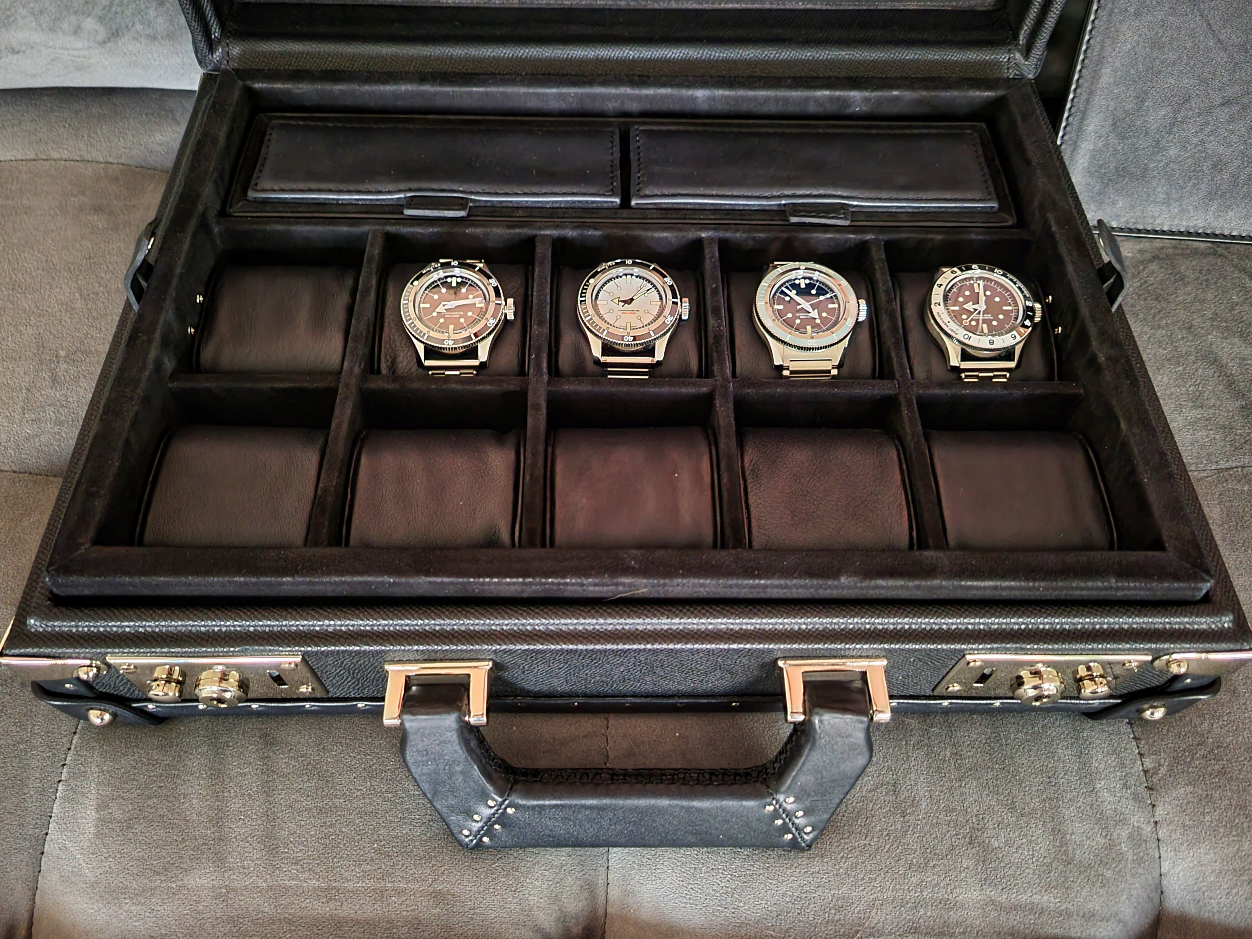 Some details were discussed, most important for me was watch pillows that would accommodate my testosterone dripping, overtly masculine 6.25 inch wrists -- I was assured it wouldn't be a problem. We also fine tuned a few options like type of leather, closures, locks and the deal was sealed.