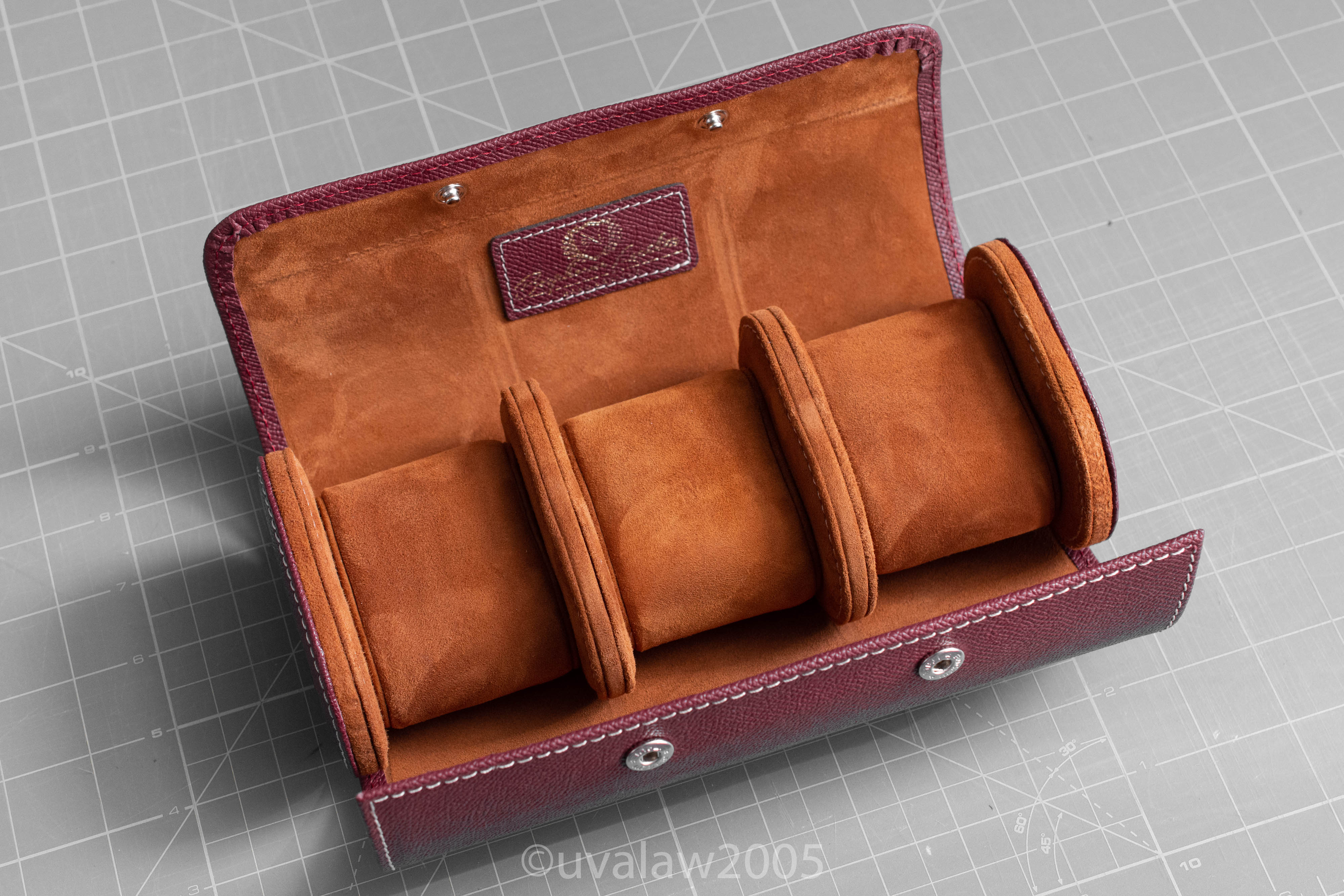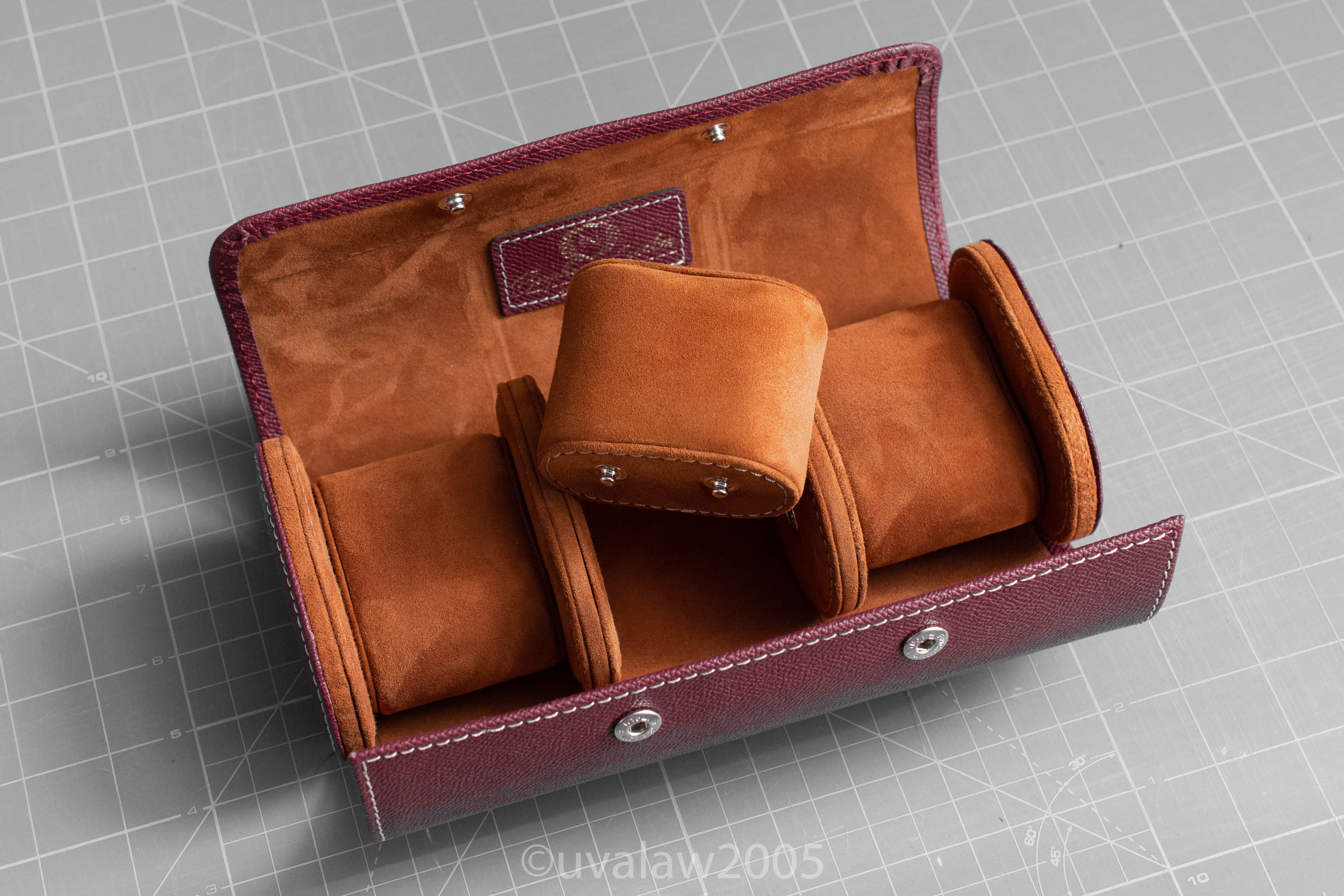 ·For sale is a new and unused Bosphorus Leather Galata Burgundy Saffiano Three Watch Roll. Outer box got a bit bent as you can see in the photos.