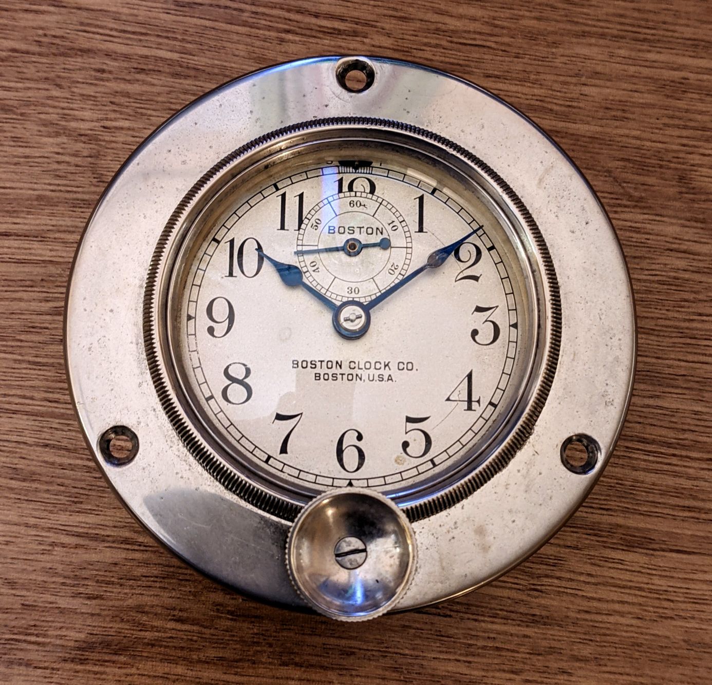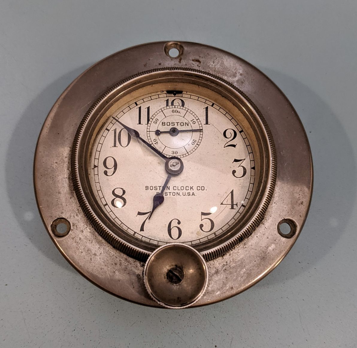 ·Grimy old Boston Clock Company car clock. Will run for short spells then stop.