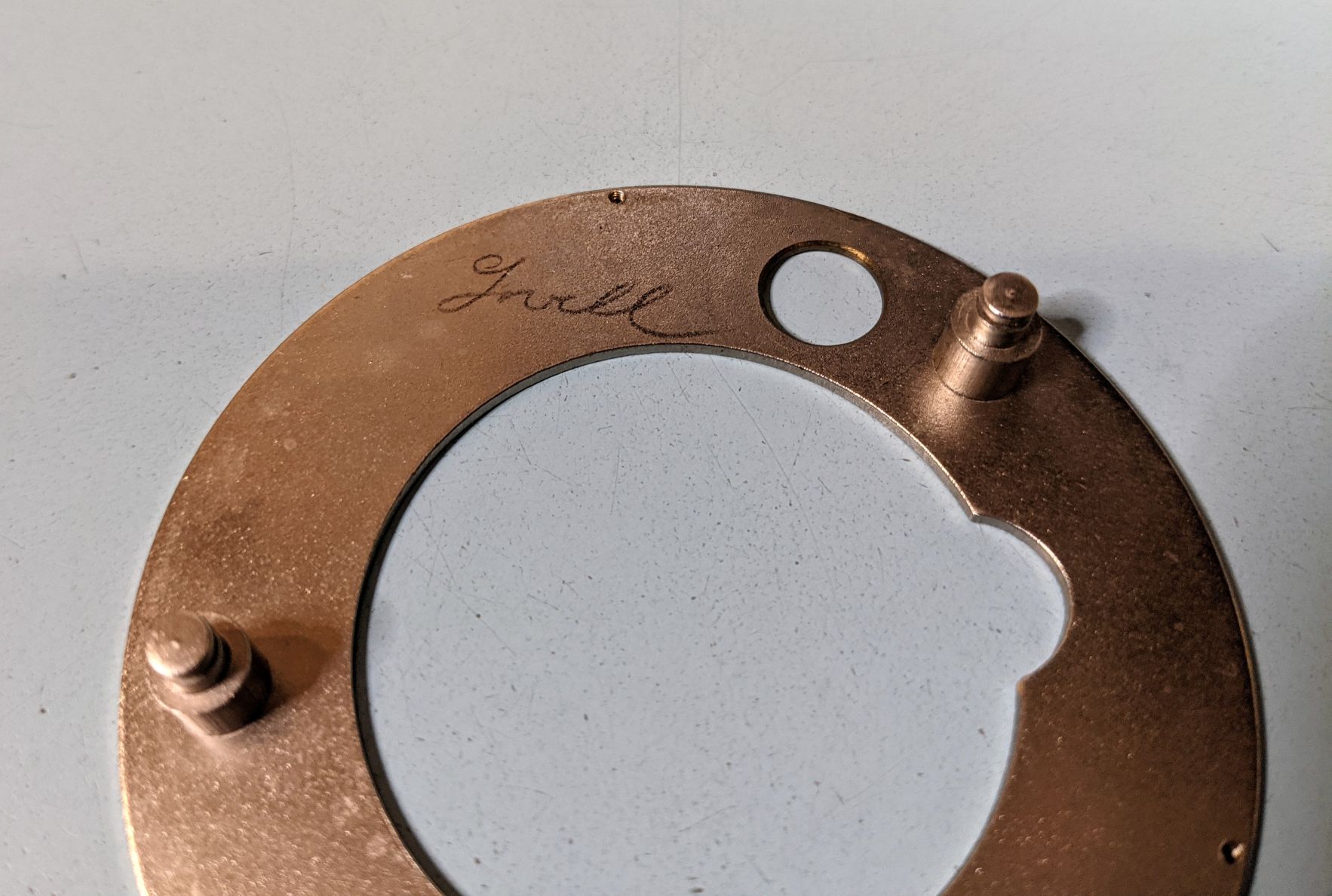 Looks like it is signed in pencil, I'll clean this bridge by hand & preserve the signature.