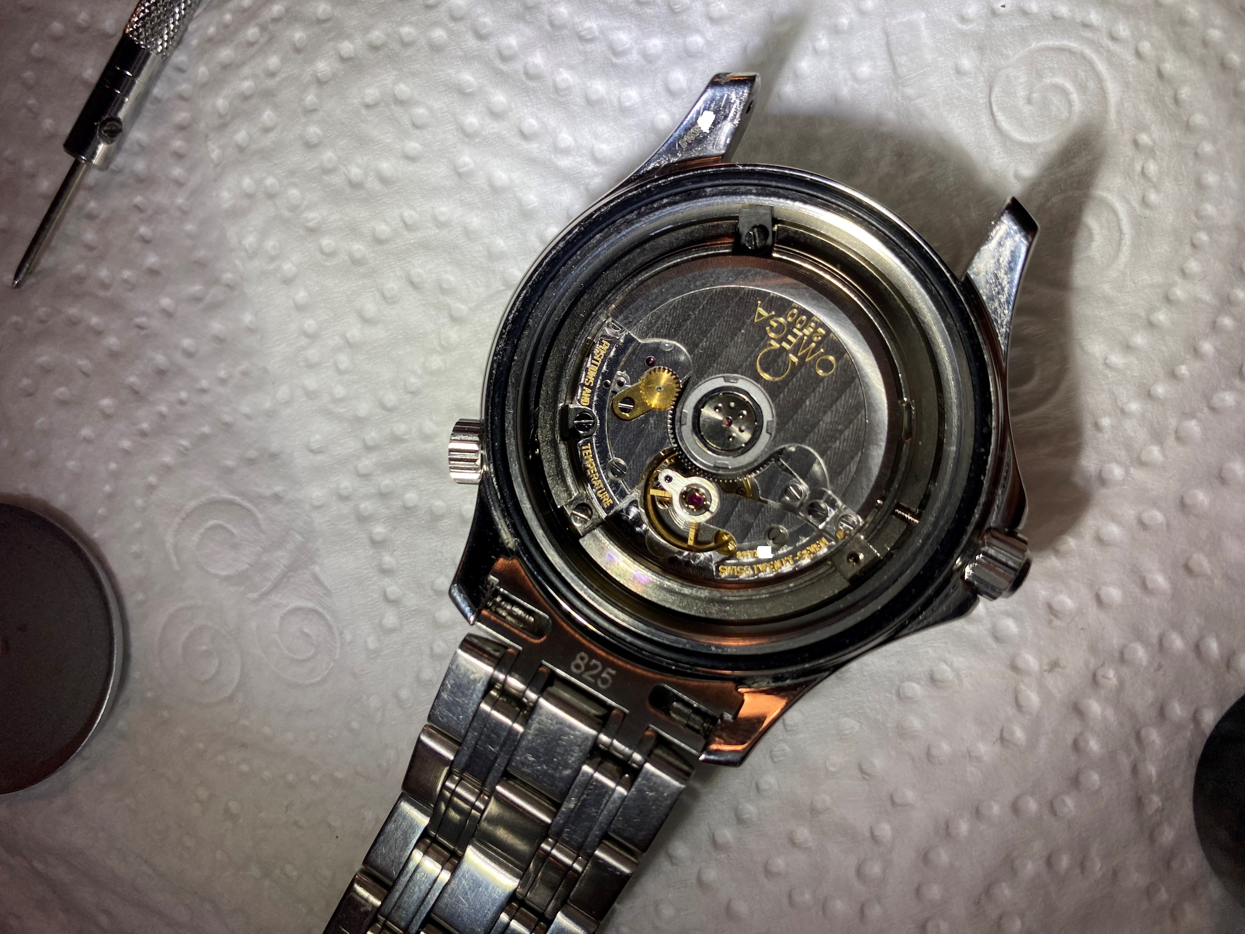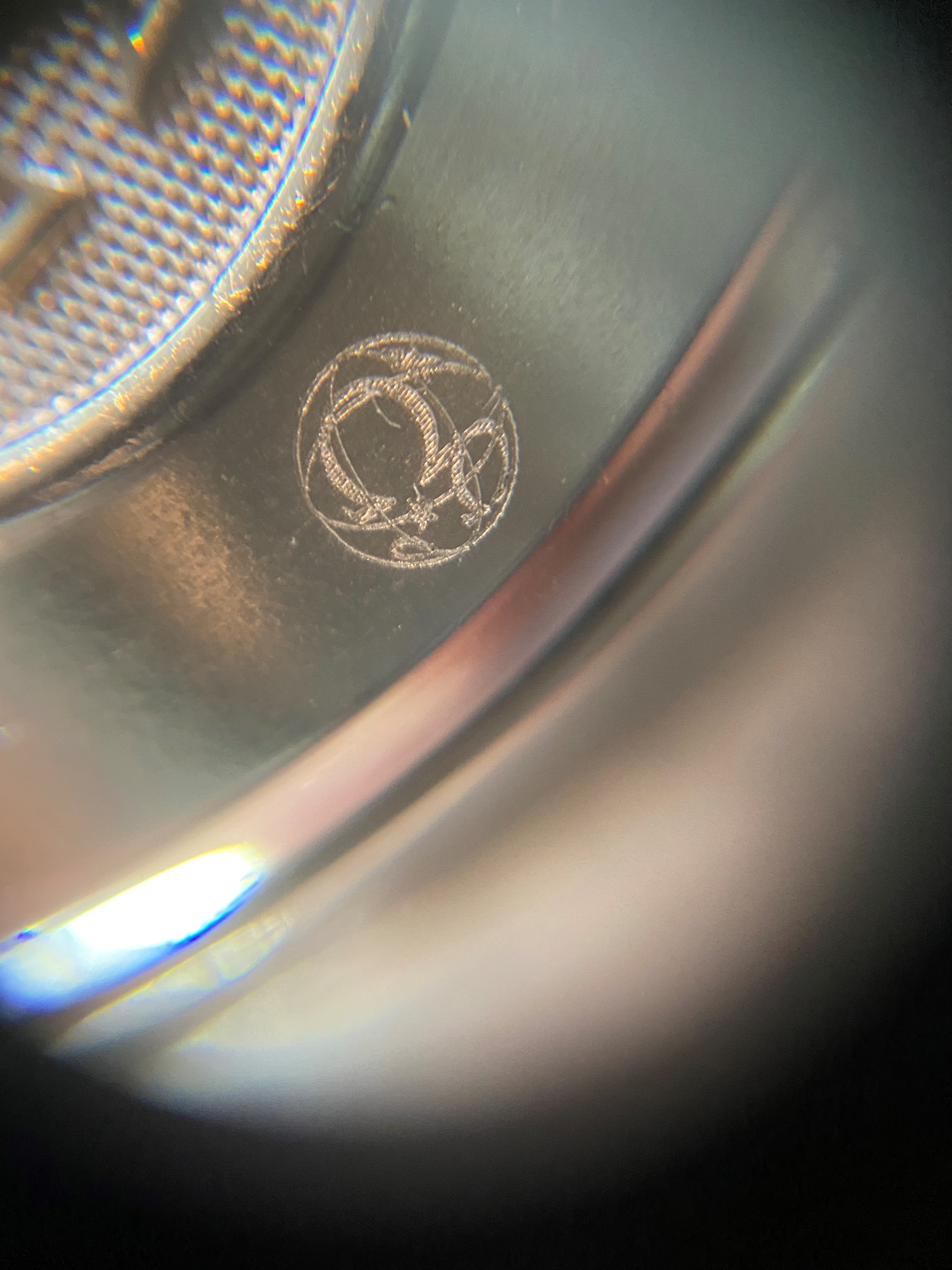 Now I just want to make sure that my watch is legit and not a fake, I really don’t think so I’m 99.9 percent sure that it isn’t fake. I got all 3 red cards (see picture). I’ve made sure to check that the serial number matches on the case (located at one of the lugs) and I’ve also checked the serial number inside the watch under the rotor. They all match on both the chronometer certificate and international warranty. I’ve also checked the Instruction manual its made in December 2008 and the watch is sold in November 2009. What my eye could tell looking up pictures on the internet of the 2500C movement I couldn’t tell any difference on my watch. I used a magnifying loupe to look up numbers and the text inside. I've also taken a picutre of the stamp on the backside of the case.