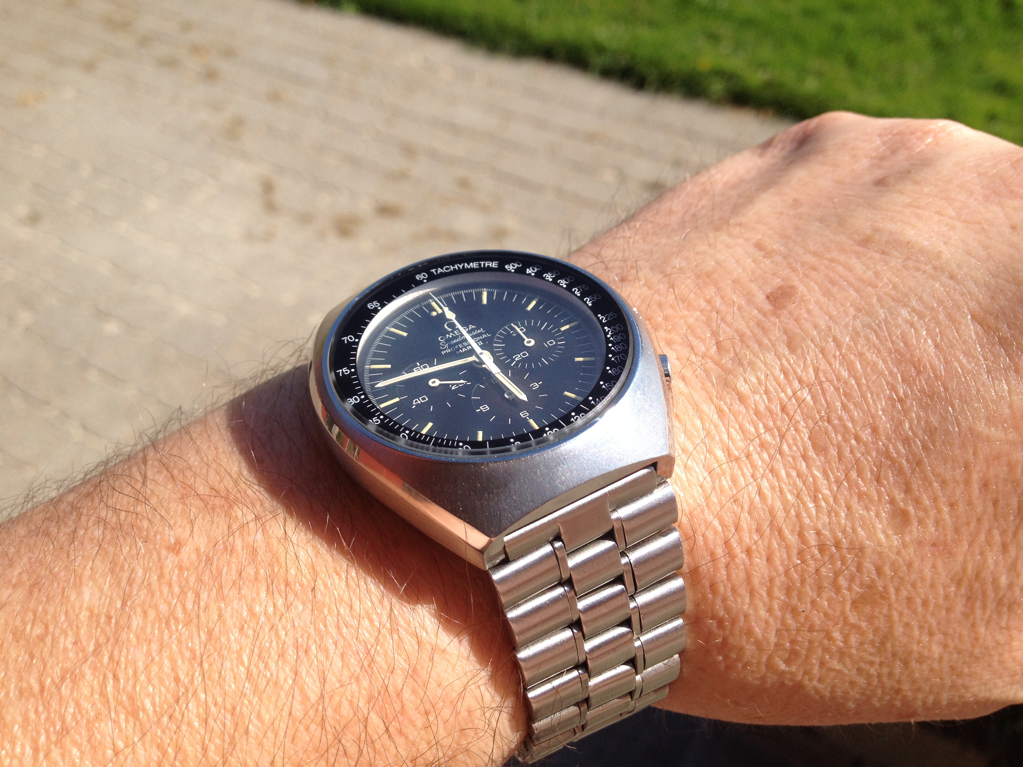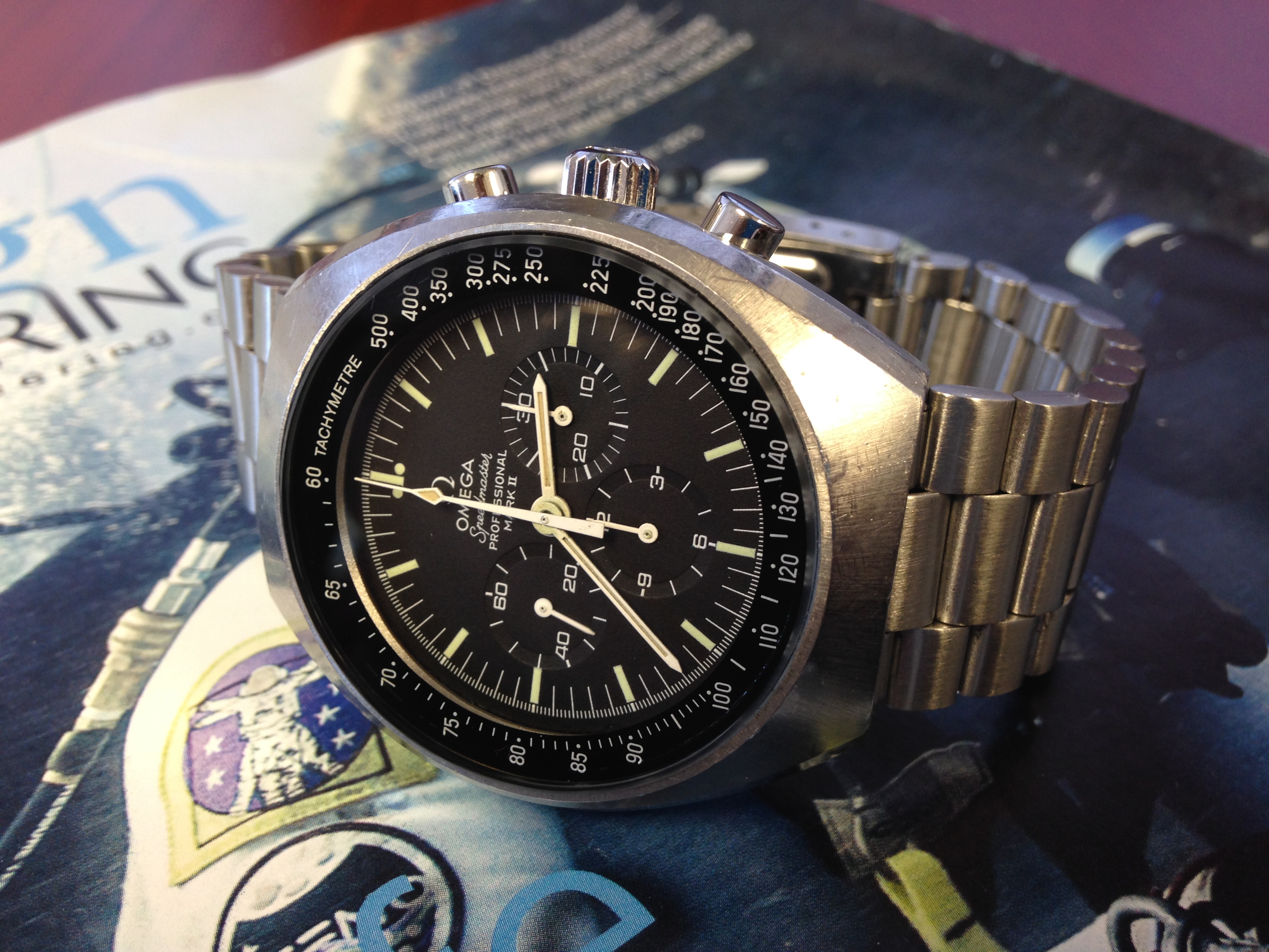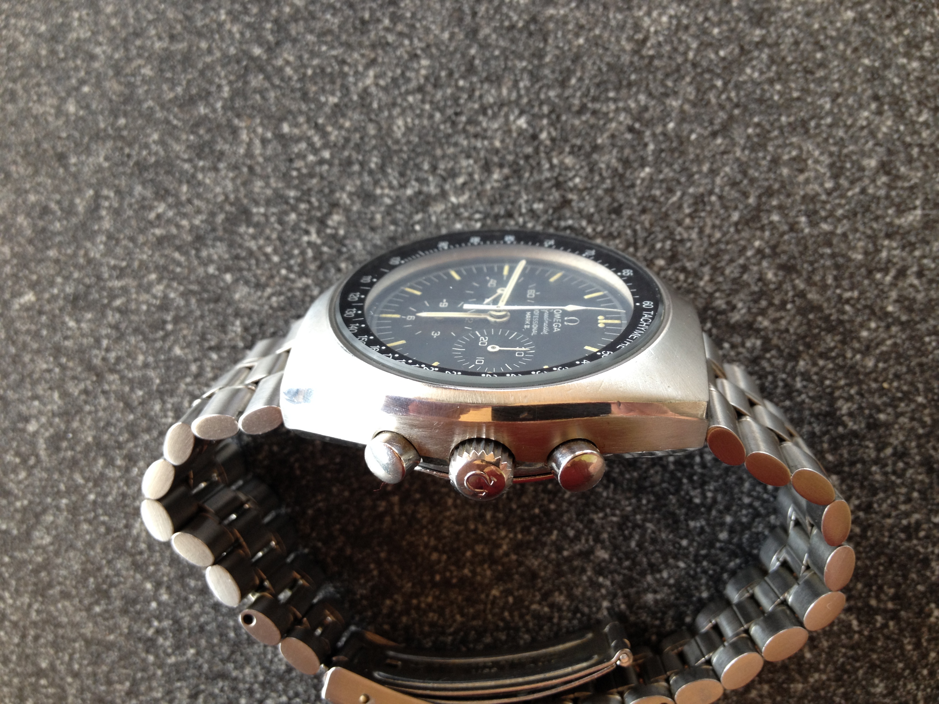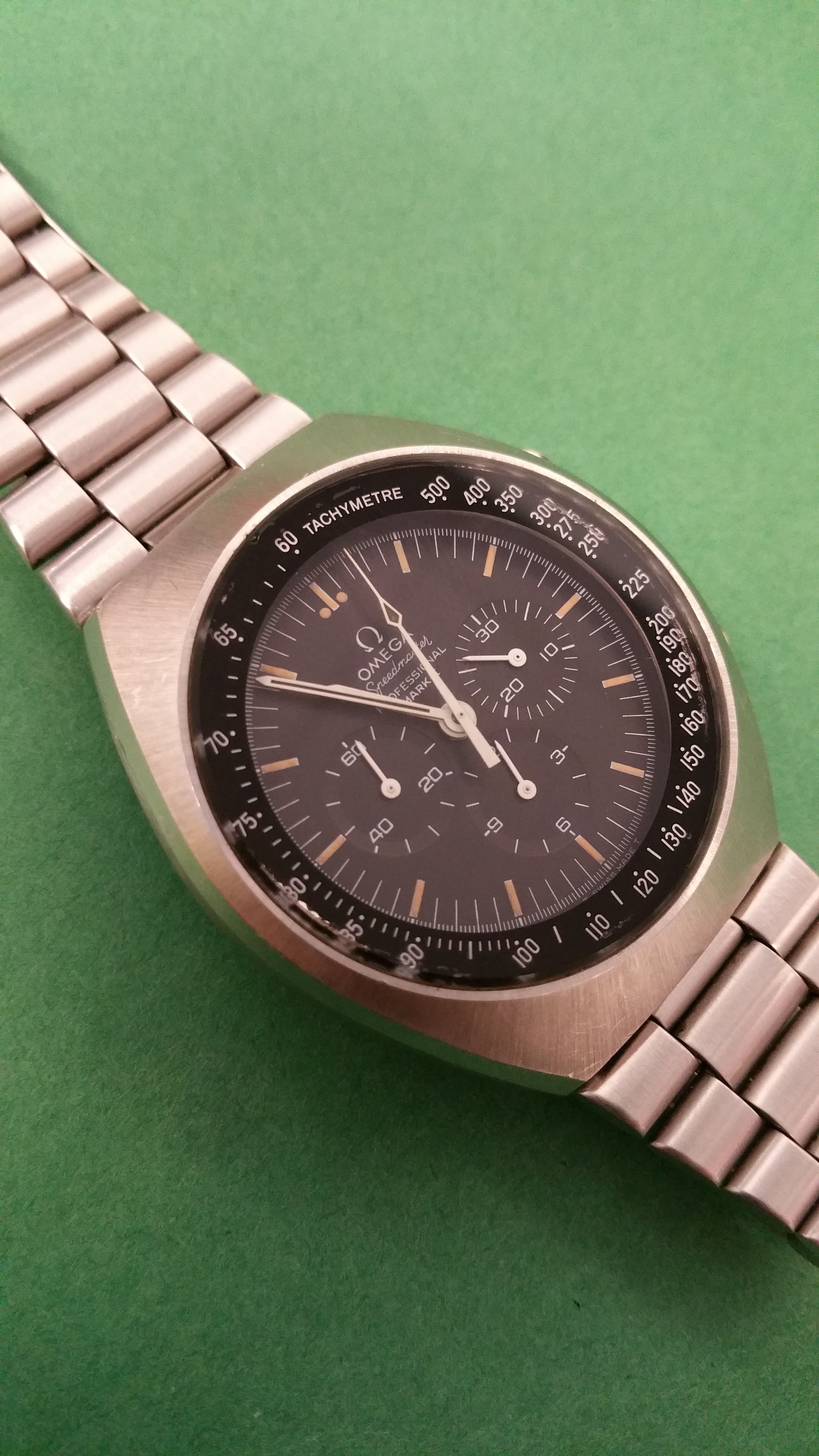 My observations: Nice dial - lowest sub dial is a tad brown, though. Not much polish and OK edges etc. Overall it seems the use have been limited.