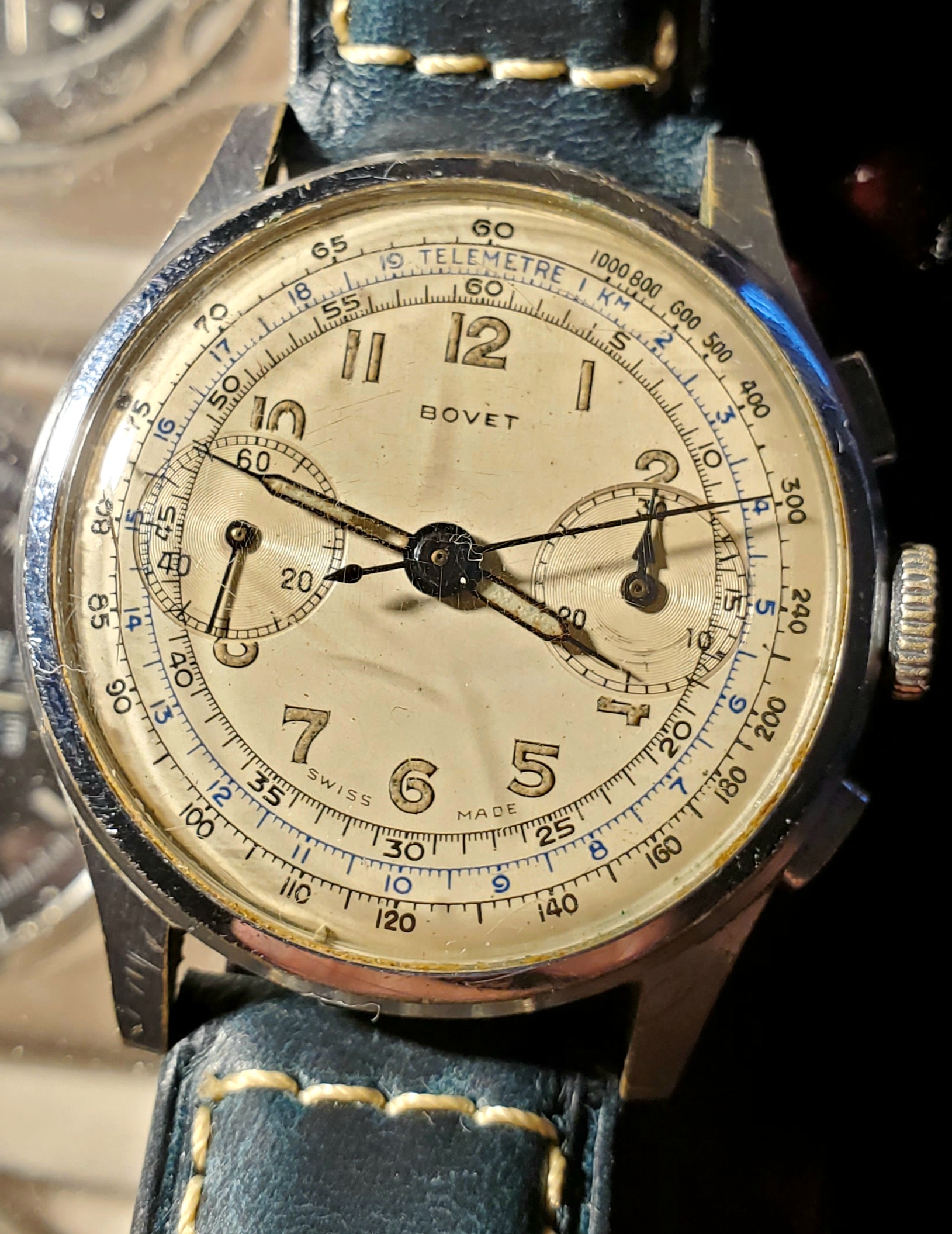 Hello all, this is my vintage Bovet Freres Co Chronograph. I purchased it at a thrift store years ago and have tried to find information about it. I believe it to be a venus 188 movement but I'll leave that up to far more knowledgeable enthusiasts. I would appreciate any feedback that I can get.