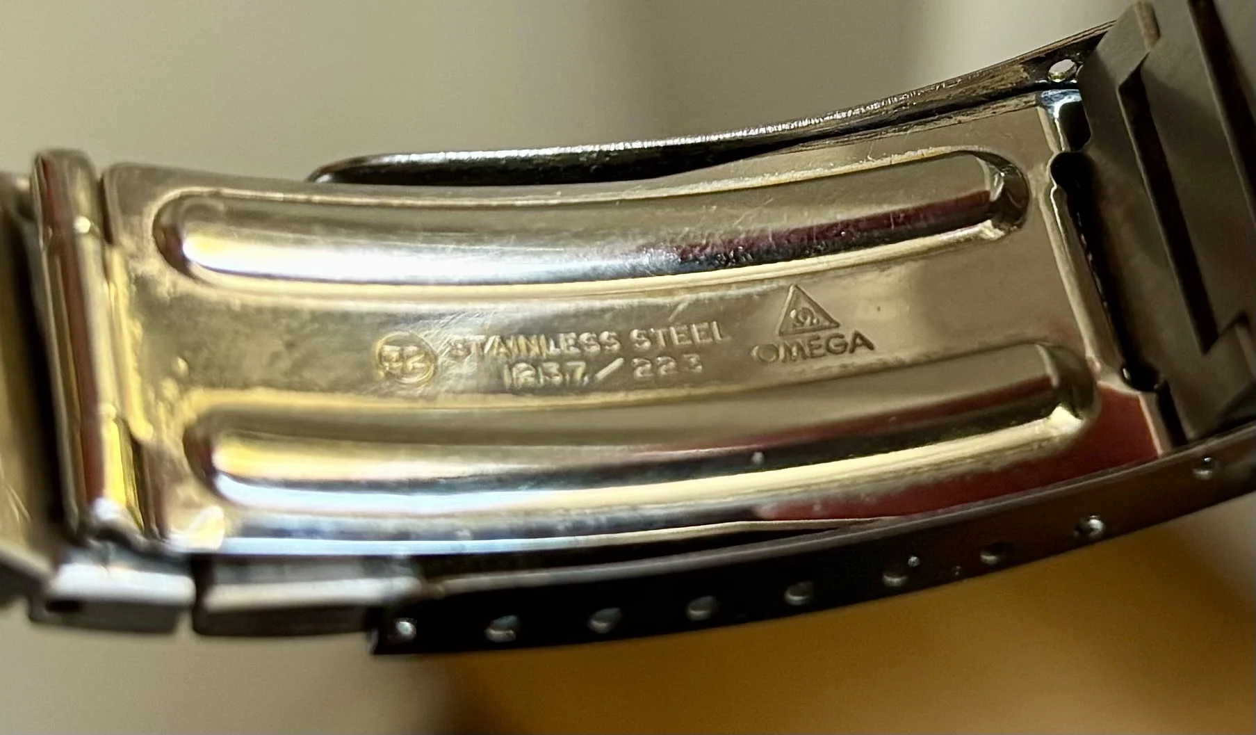 I have had the watch overhauled by an independent watchmaker so that it is now presentable again. The watchmaker pointed out to me that the bracelet halves are aftermarket and therefore do not fit the watch perfectly. The clasp, on the other hand, is original. The code on the clasp is 1237/223.