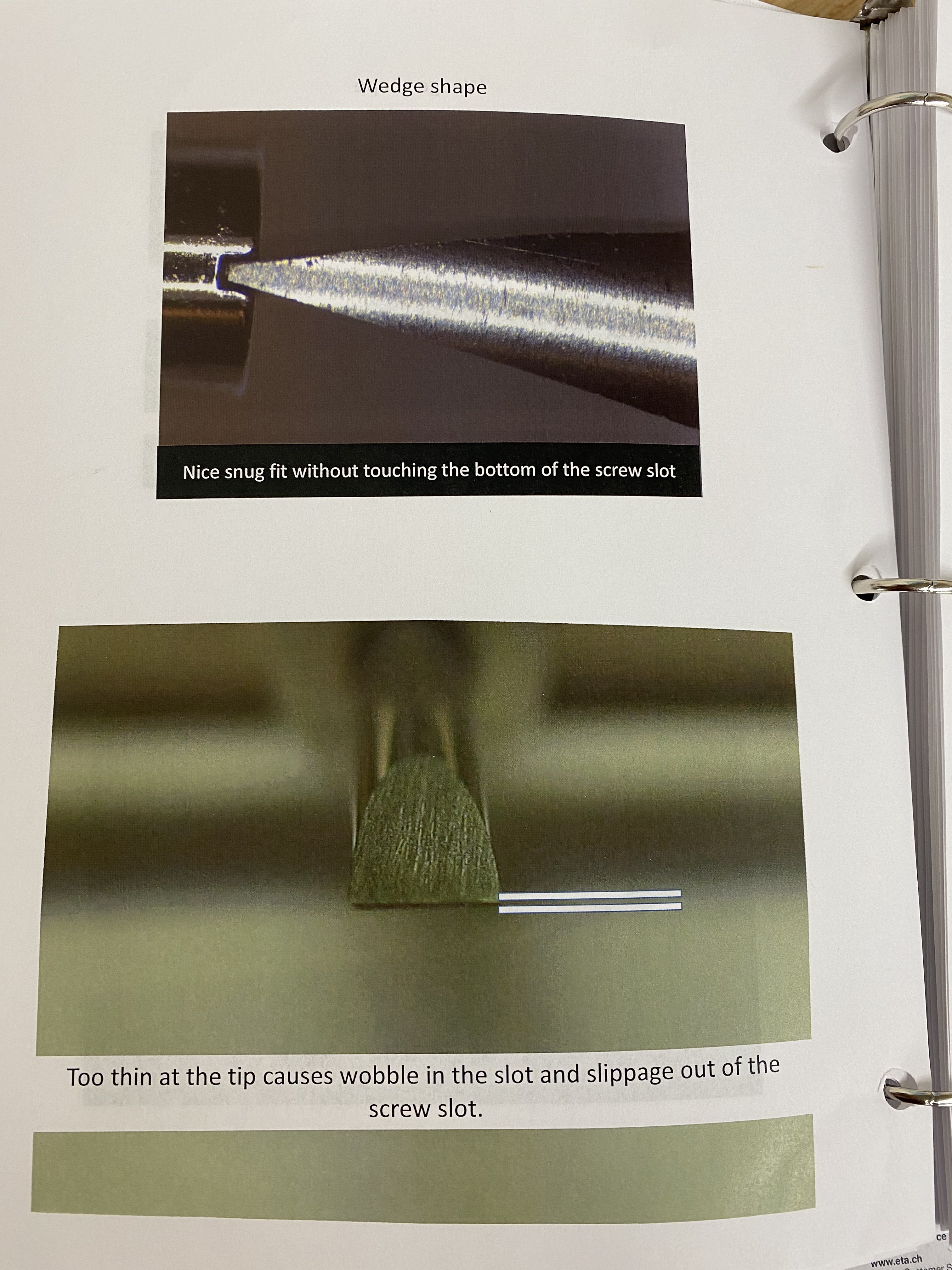 Okay, so are you saying a screwdriver should be snug in the slot, but the tip not hit the bottom? How would one manage that with tiny screw? Press the tip into the bottom, and back it out?