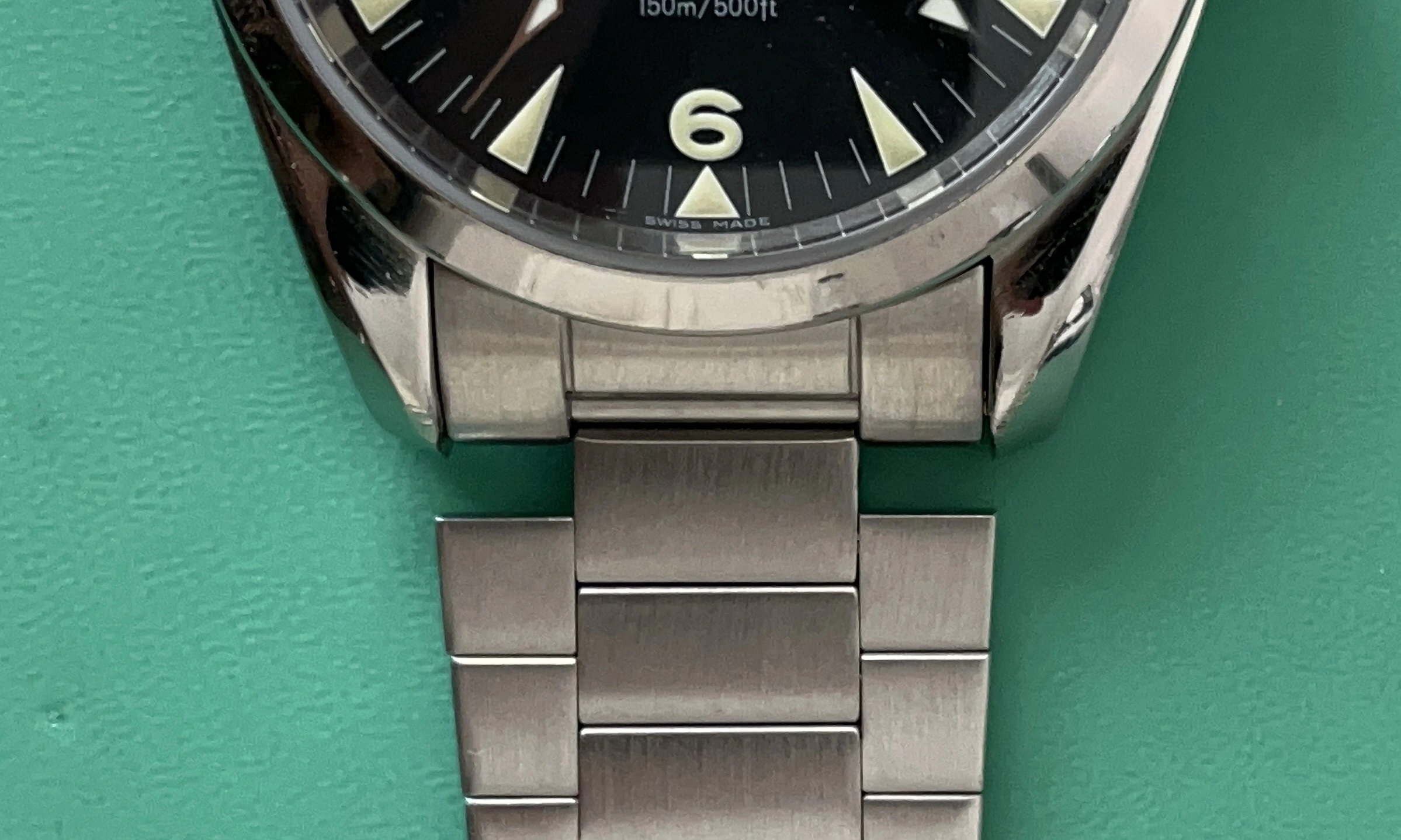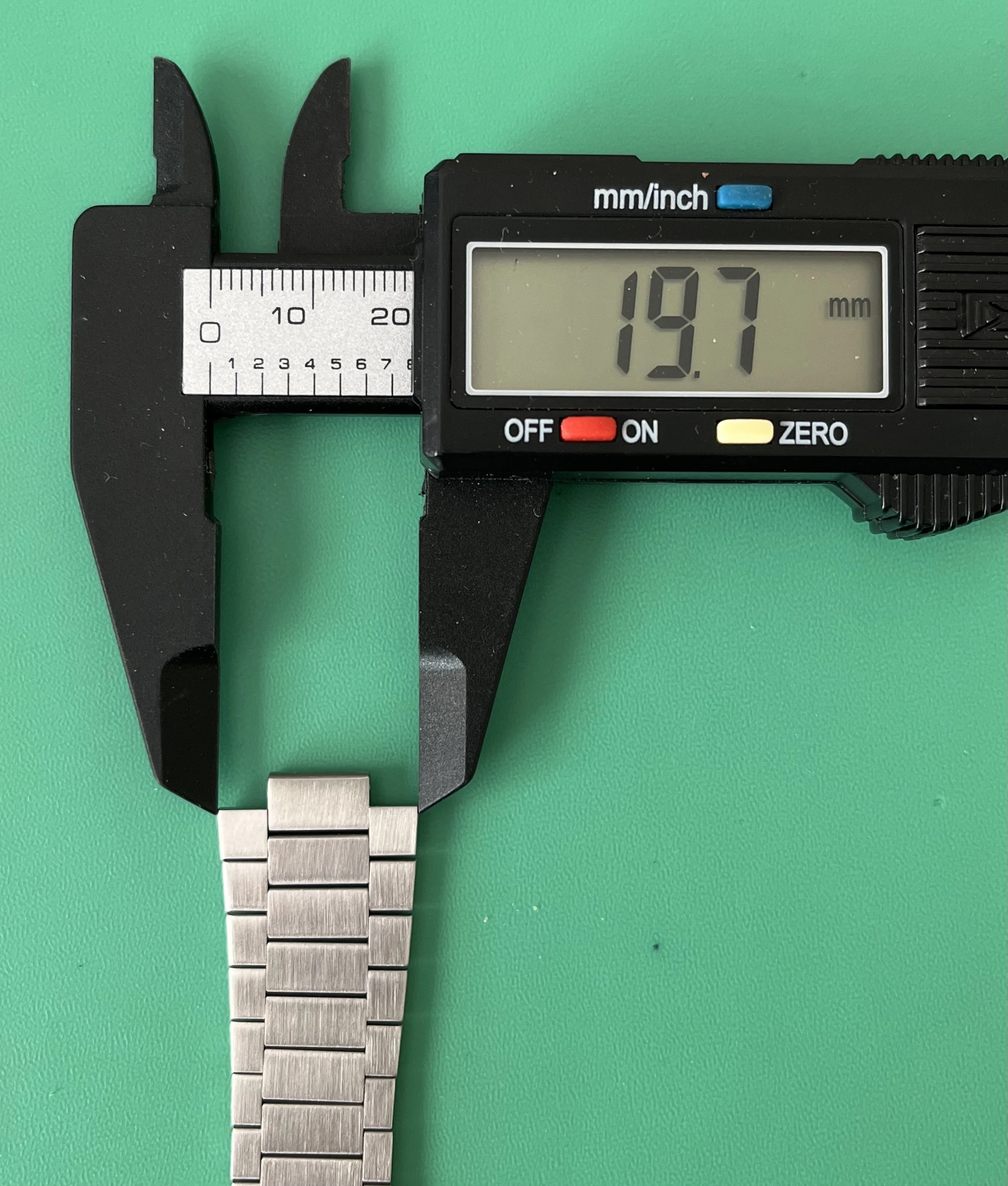 Crucially, the Uncle Straps' proper links are 19mm rather than 20mm, so there is no problem fitting them to the watch.