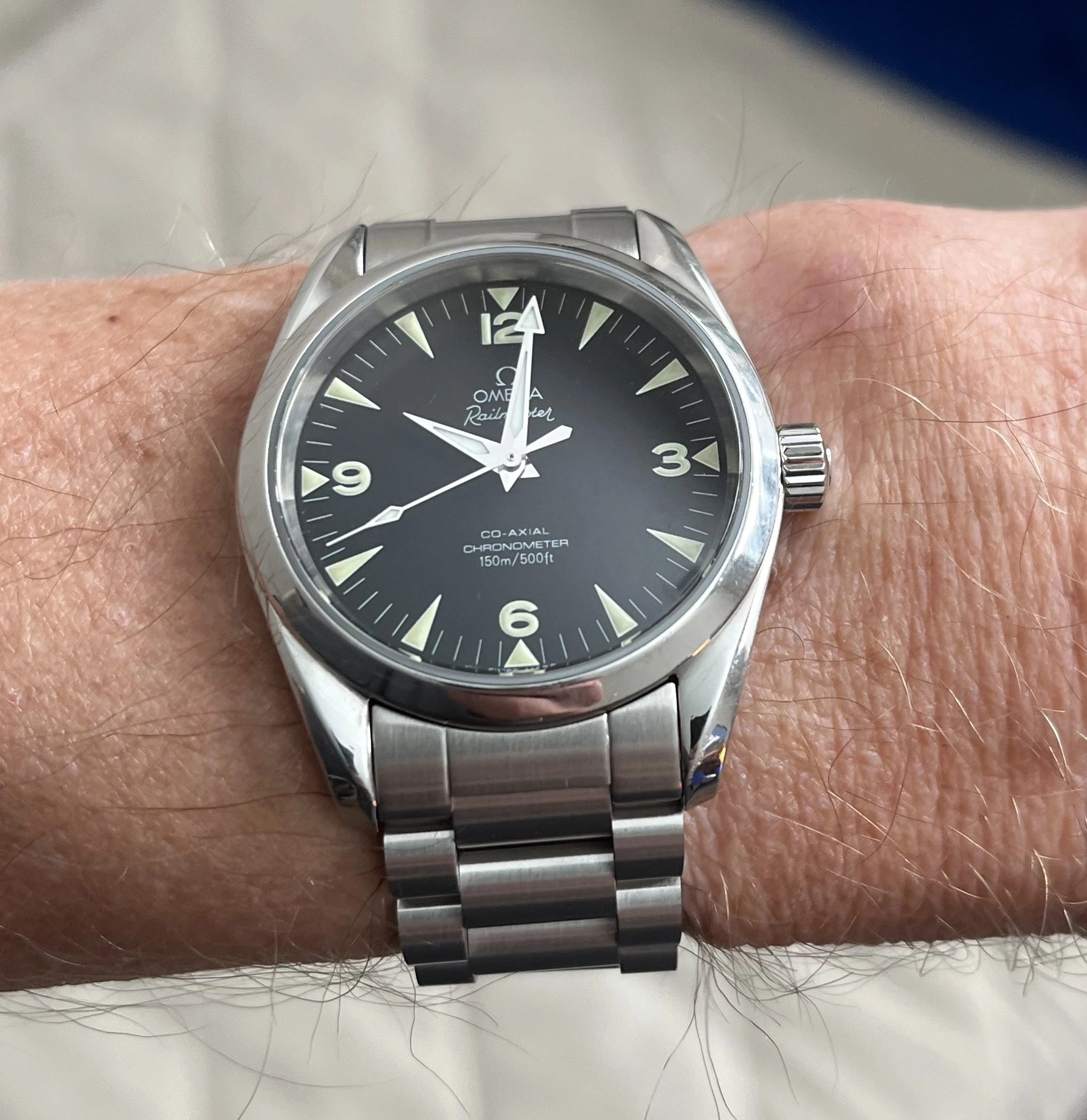I'm personally not a fan of Omega's OEM bracelet. The clasp is fiddly in the wrong way: it's too hard to close reliably, and it's too easy to open (e.g. inadvertently). The lack of micro adjustment also makes it difficult for me to maintain a comfortable fit for the entire day. Switching to the Uncle Straps US1450 has significantly increased my enjoyment of the watch.