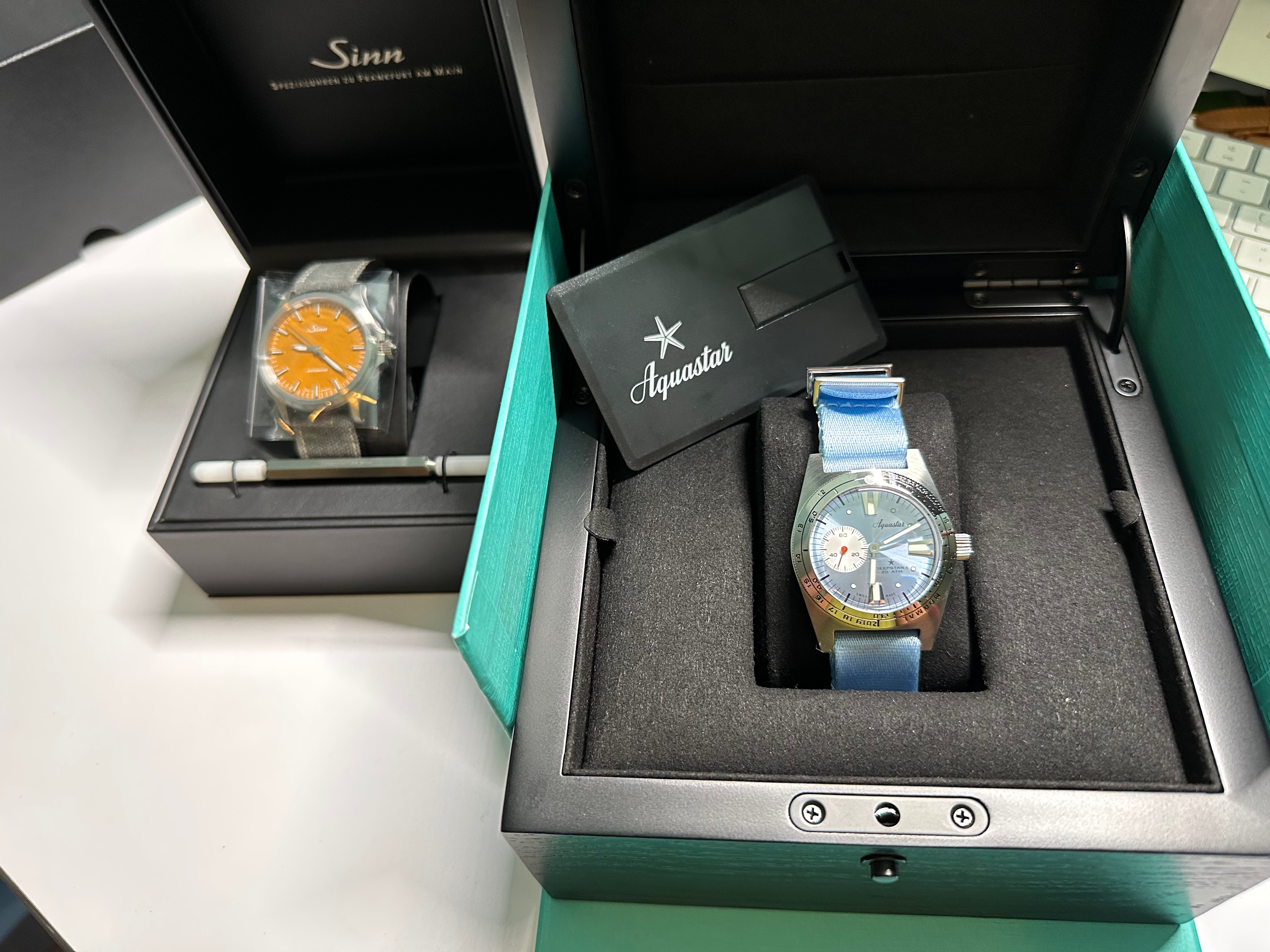 - Sunburst Ice blue dial with applied markers and Super-LumiNova