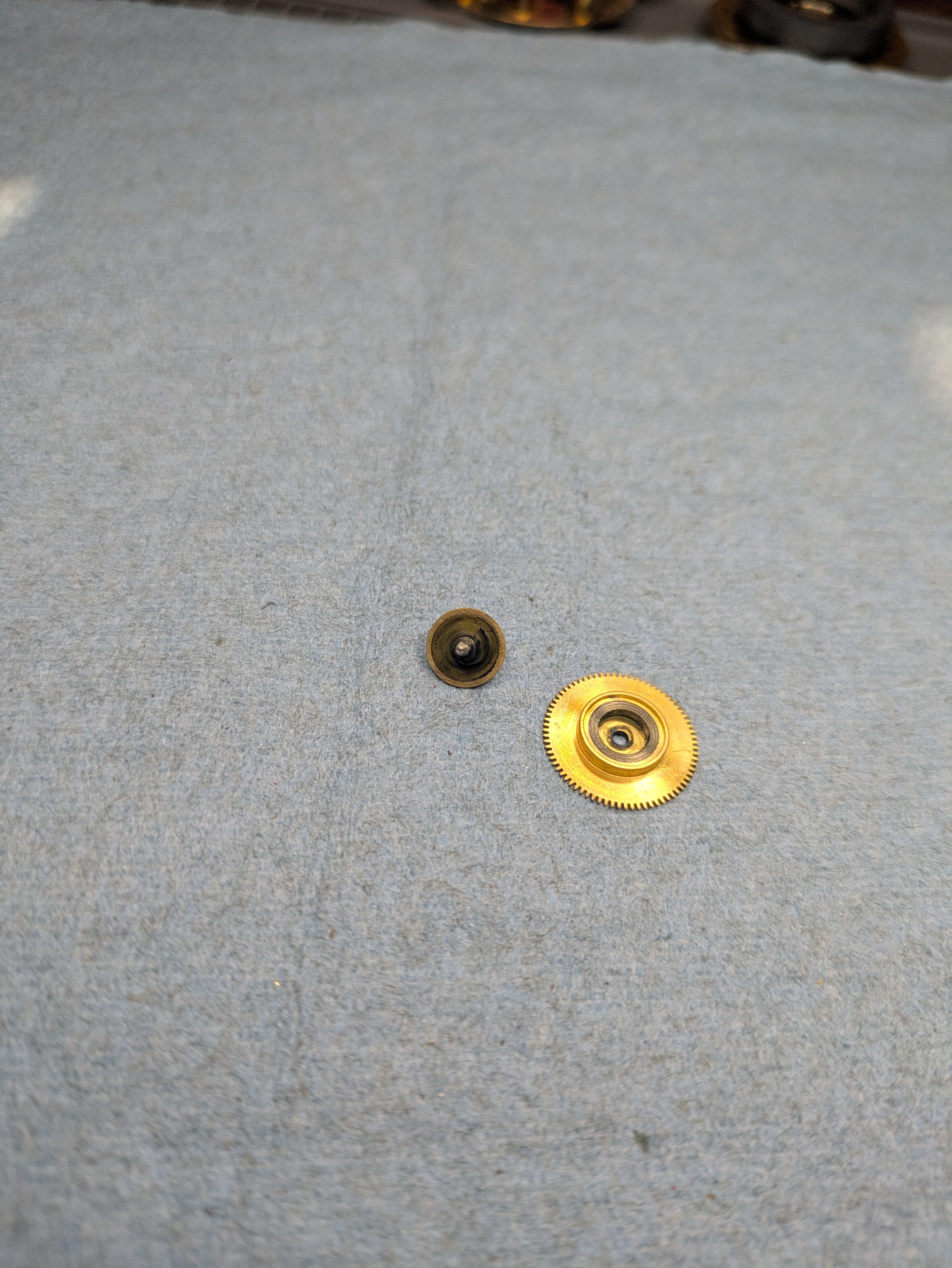 Thanks, I see, so the brass wheel in my pictures can be unscrewed from the axle of that part in your picture that contains the mainspring.