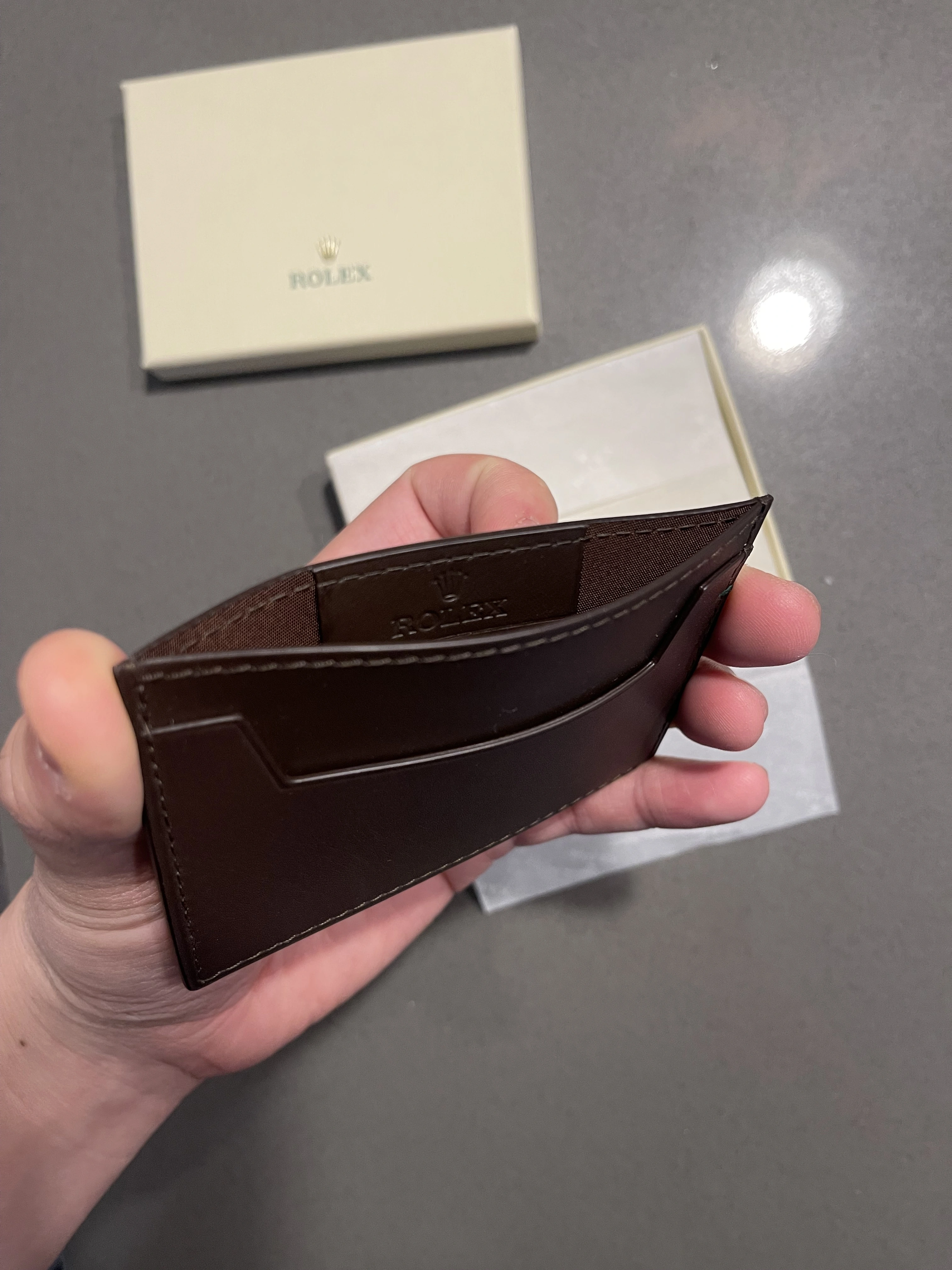 Chocolate brown calf skin card holder - $100.00